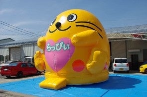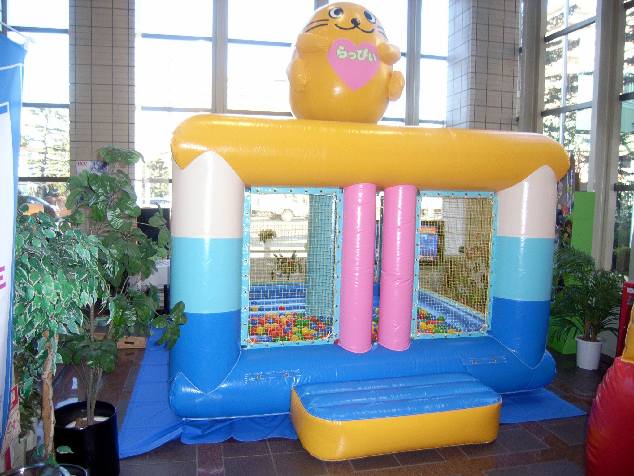 ふわふわのメガらっぴぃドームです。屋内遊具施設「ア・ソ・ボーヤ」にて設置。ふわふわ飛び回ろう!