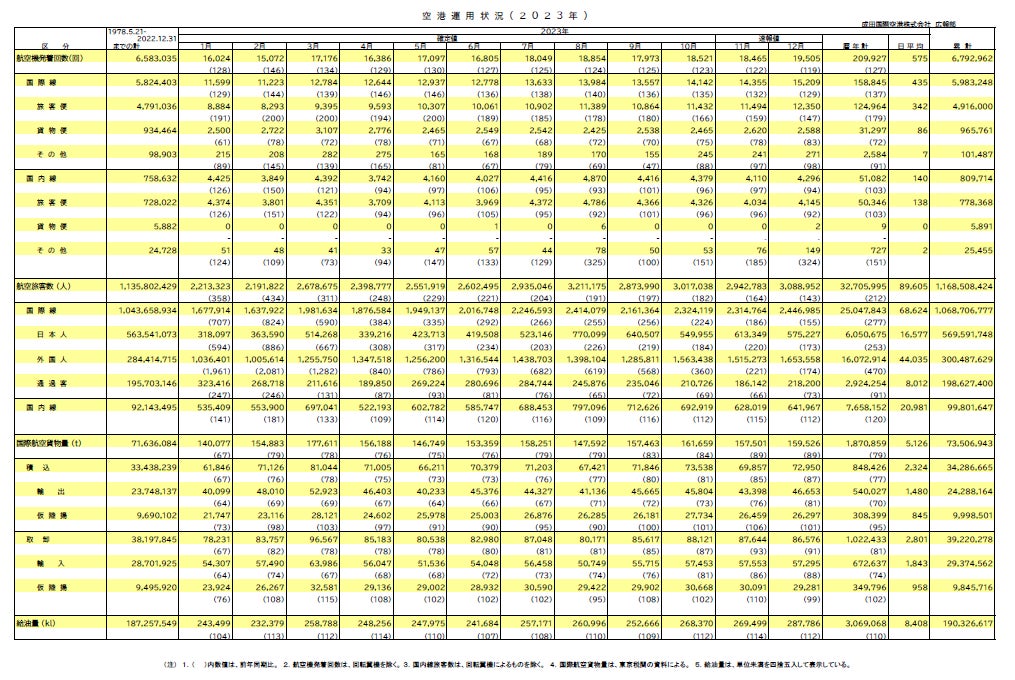 【2023 年 暦年 空港運用状況】