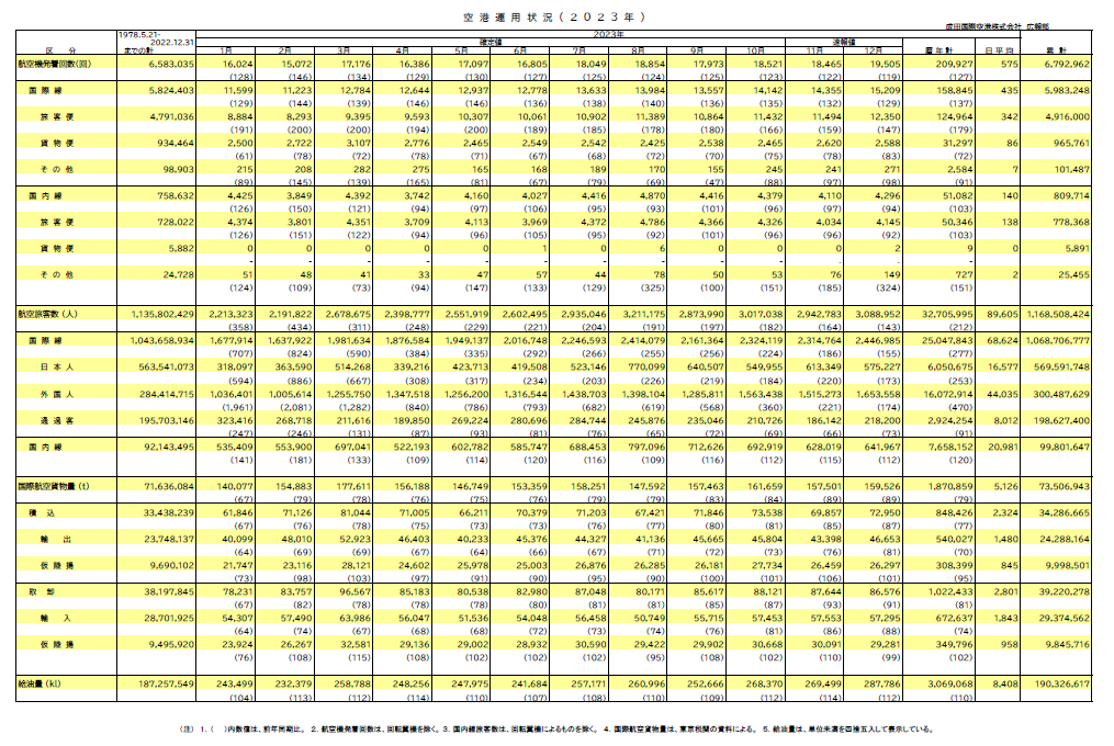 【2023 年 暦年 空港運用状況】