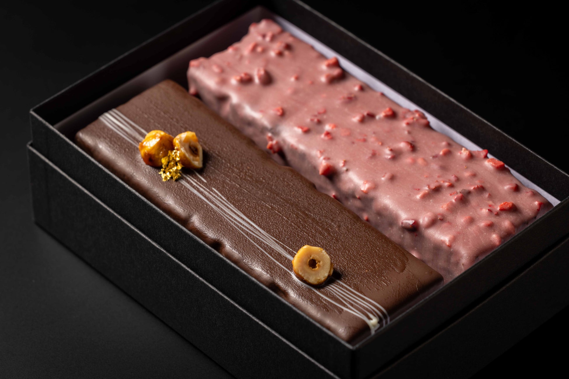 生地にチョコチップを混ぜ込んだダークチョコレート風味と、ラズベリーとクランベリーを混ぜ込み、ルビーチョコレートにフリーズドライのイチゴで仕上げたベリー風味の2種類をボックスに入れ、バレンタインギフトや春のギフトシーズンにもふさわしく仕上げました。