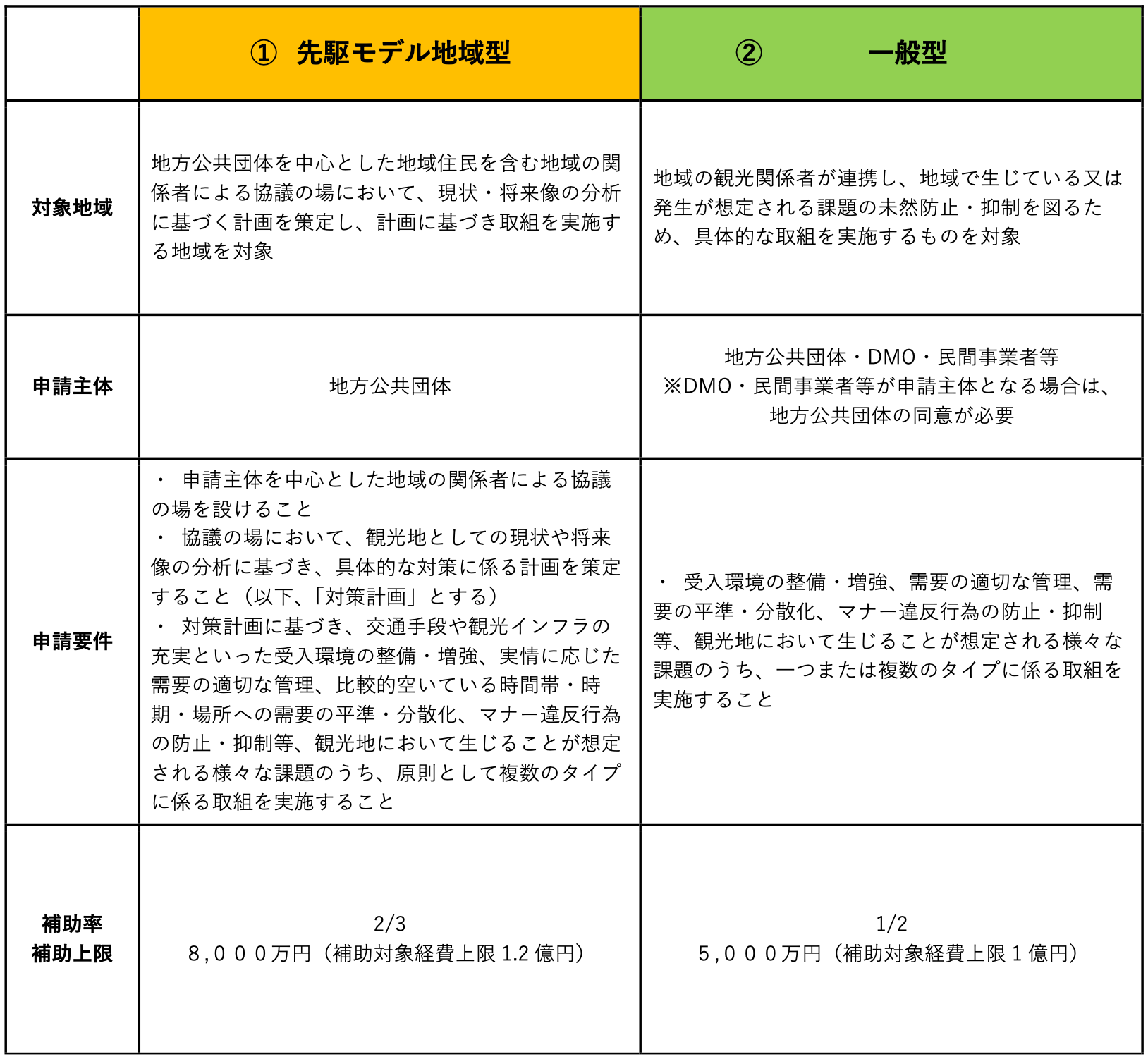 需要の分散・平準化、マナー違反行為の防止・抑制、地域住民と協働した観光振興の取組を対象とする