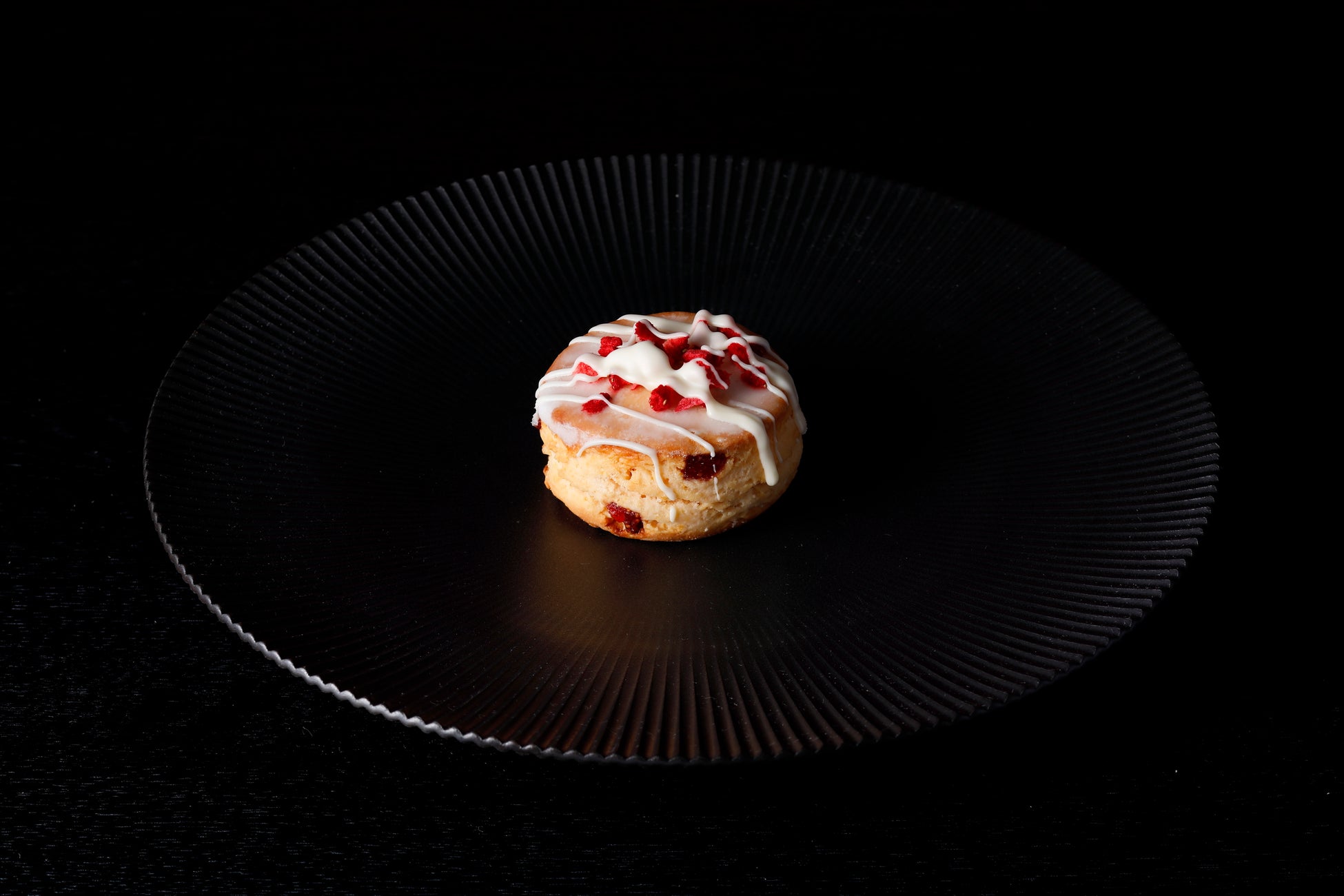 特殊な製法でセミドライにした「博多あまおう」を生地に練りこみ、博多あまおうのパウダーとフリーズドライしたいちごをトッピング。生地表面のホワイトチョコレートは程よい酸味が特徴で博多あまおうとの相性も抜群です。1年でこの時期にしか食べることのできない期間限定の味をお愉しみください。