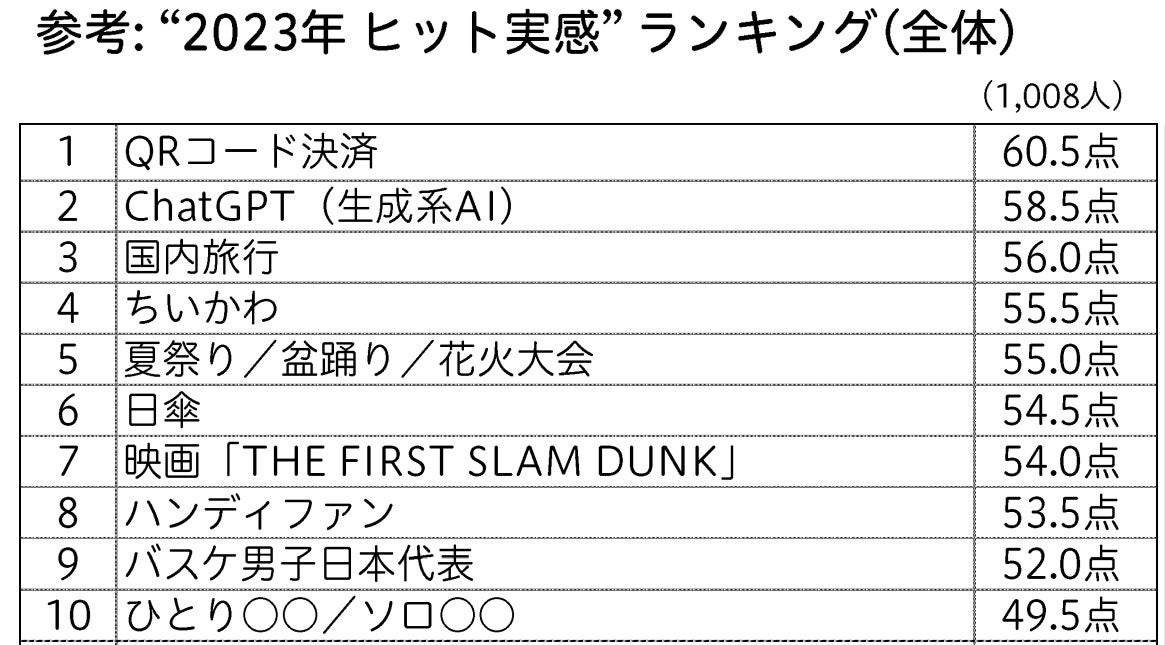 ※1 出典元:博報堂生活総合研究所、2024年ヒット予想&2023年ヒット実感ランキングを発表https://www.hakuhodo.co.jp/news/newsrelease/106410/
