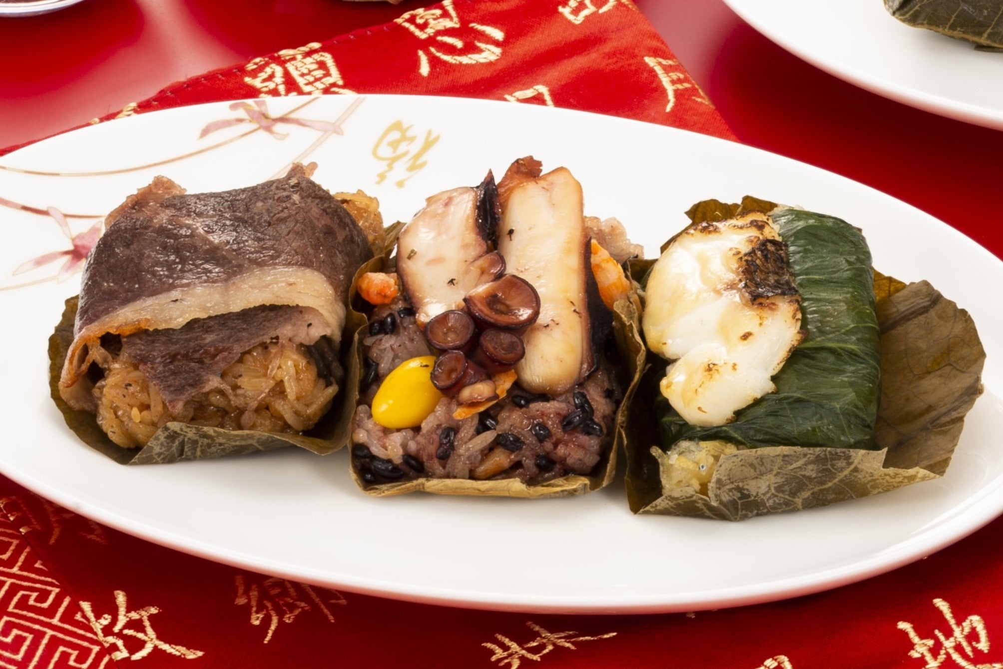 広島県産食材を主役とした「ひろしま中華ちまき」のラインナップは、『広島牛の炙り×女鹿平舞茸入りちまき』と『三原やっさタコの香料煮×干し海老入り黒米のちまき』、『瀬戸内天然鯛の藻塩ロースト×音戸ちりめん×広島菜漬けのちまき』の3種。国内外で修業を積み数々の受賞実績がある、当ホテル中国料理「煌蘭苑」料理長 山本大治が、本格中華の調理法を用いつつ、ワクワクする見た目の個性豊かなちまきに仕上げました。一番のこだわりは、大きすぎる広島県産食材。蓮の葉で旨味をぎゅっと包み込み、開けると現れる3種類の大きな具材と広がる香ばしい香りは、食欲をそそります。見た目も楽しく食べ応え抜群!飽きることなく、瀬戸内海に面した美味しい食材の宝庫・広島県が誇る海と山の食材を贅沢にご堪能いただけます。