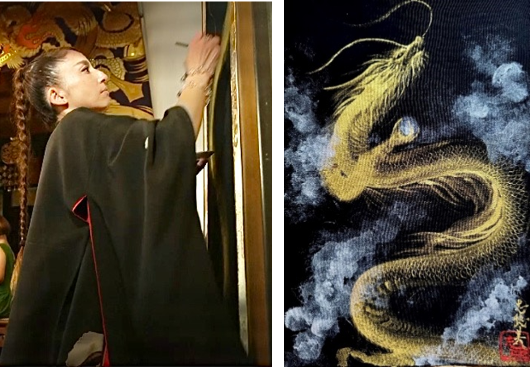 今回のコラボレーションは、瑞華院了聞の建物を目にした志穂美氏が「このお寺に龍の絵を奉納したい」と住職へ直談判したことから始まります。偶然にも、「了聞の本堂には龍神様がいる」との由縁があることや、志穂美氏の”日本文化を自身を通してアートやパフォーマンスで表現し、日本の精神性の素晴らしさを伝えたい”などの想いが通じ合い、辰年の今年、コラボレーションイベントの開催が決定致しました。
