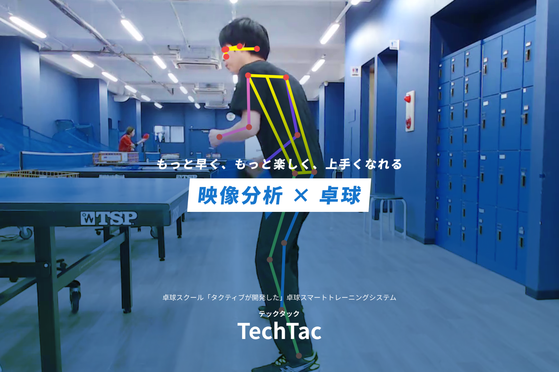 そこでタクティブでは、打球フォームの骨格推定技術などのデータを活用することで、練習を決める、打球する、動きを確認する、改善ポイントを見つける、という一連のトレーニングをより効果的にサポートする卓球スマートトレーニングシステム「TechTac(テックタック)」を開発しました。