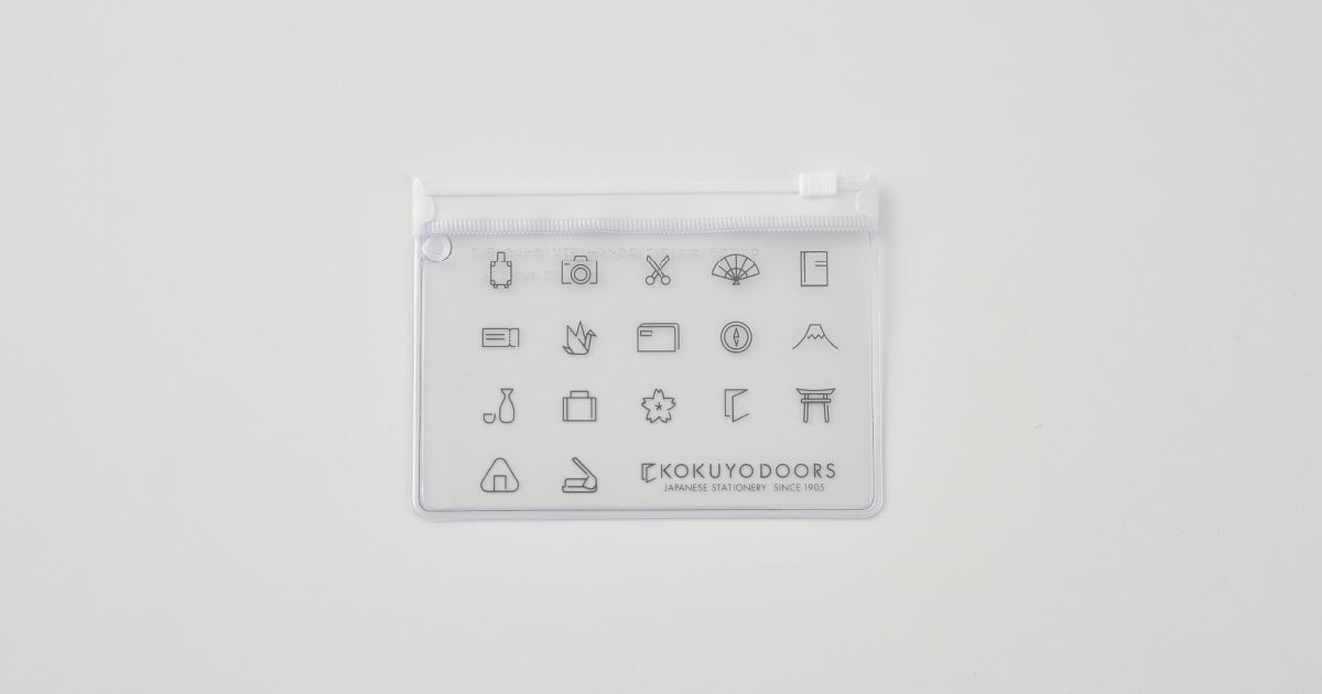 コクヨの定番品であるクリアケースにオリジナルデザインのフィルムを入れたミニケースです。旅の小物整理にもお使いいただけます。店内商品を合計2,000円(税込)以上お買い上げでプレゼントします。
