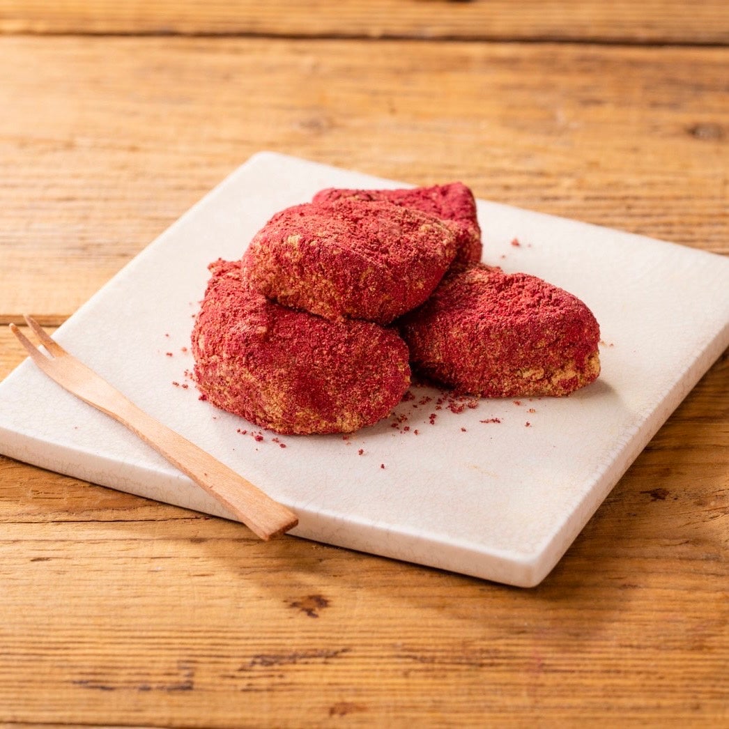 六雁和菓子製作所のいちごフレーバーの生わらび餅は、季節感溢れる旬のいちごの風味を活かしています。この生わらび餅は、いちごの自然な甘酸っぱさと芳醇な香りが際立ち、季節ごとに変わるその味わいが魅力です。滑らかな食感の生わらび餅とともに、いちごの魅力を存分に味わえます。