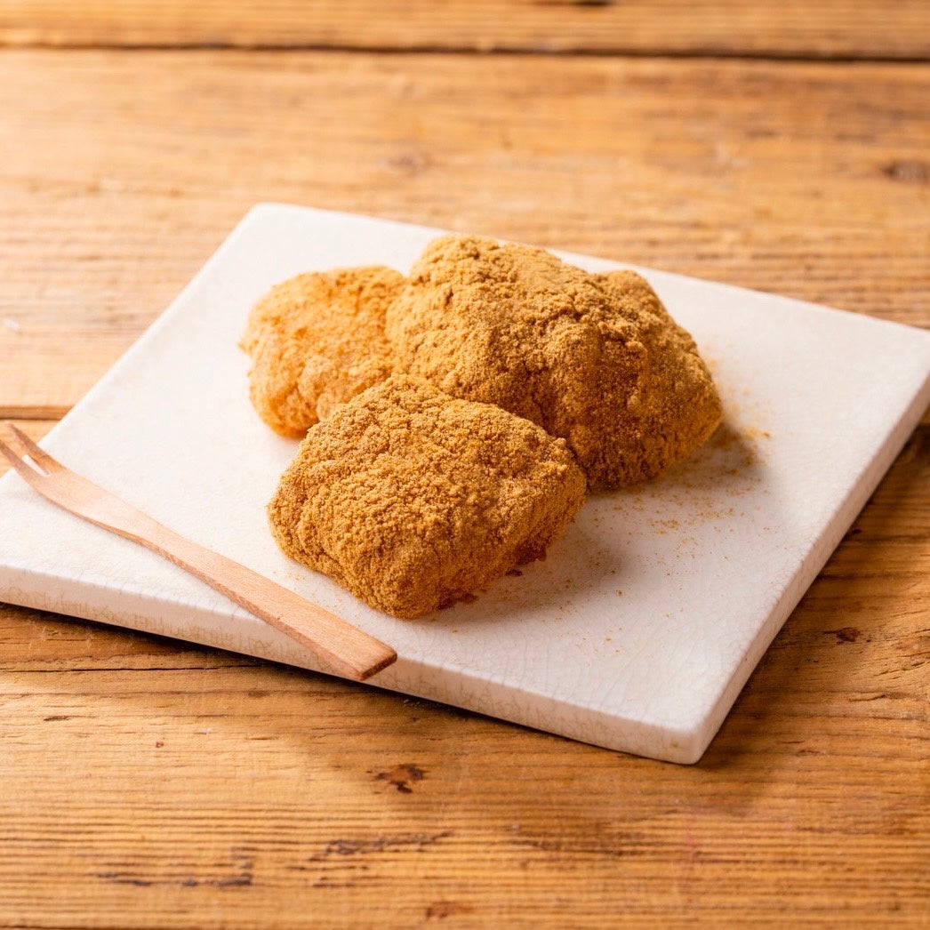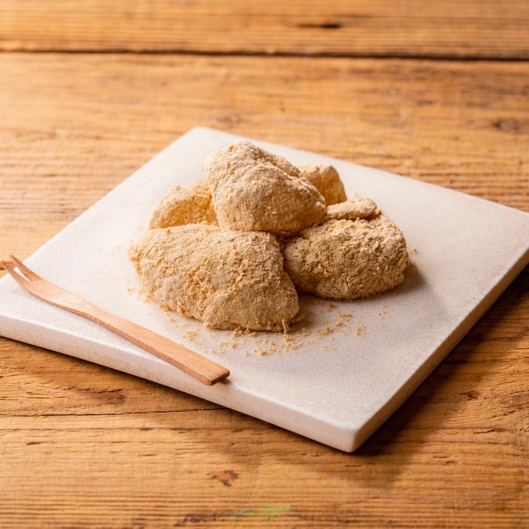 定番のきなこのフレーバーは、和菓子の伝統を感じさせる優しい味わい。きなこのほんのりとした甘さと香ばしさが、生わらび餅の優しい味わいと絶妙に調和し、日本の伝統的な味を再現しています。
