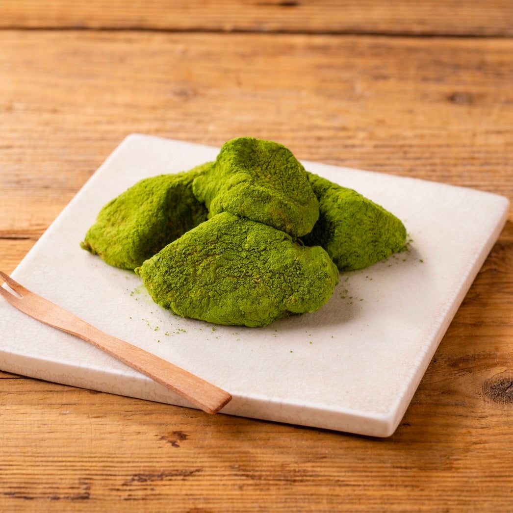 深みのある抹茶のわらび餅は、上質な抹茶の豊かな風味と深い色合いが特徴です。一口食べると、抹茶の繊細な苦みと生わらび餅の甘みが絶妙にマッチし、上品な味わいを楽しめます。