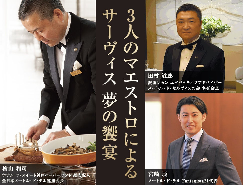 同館総支配人の檜山和司と、メートル・ド・セルヴィスの会名誉会長である田村敏郎氏、「クープ・ジョルジュ・バティスト」サービス世界コンクールで優勝した宮崎辰氏が一堂に会する本イベントでは、フルコース料理の全てをお客様の目の前でカービングなどのパフォーマンスを行い、最高峰のサーヴィスによる特別な一夜をお届けします。