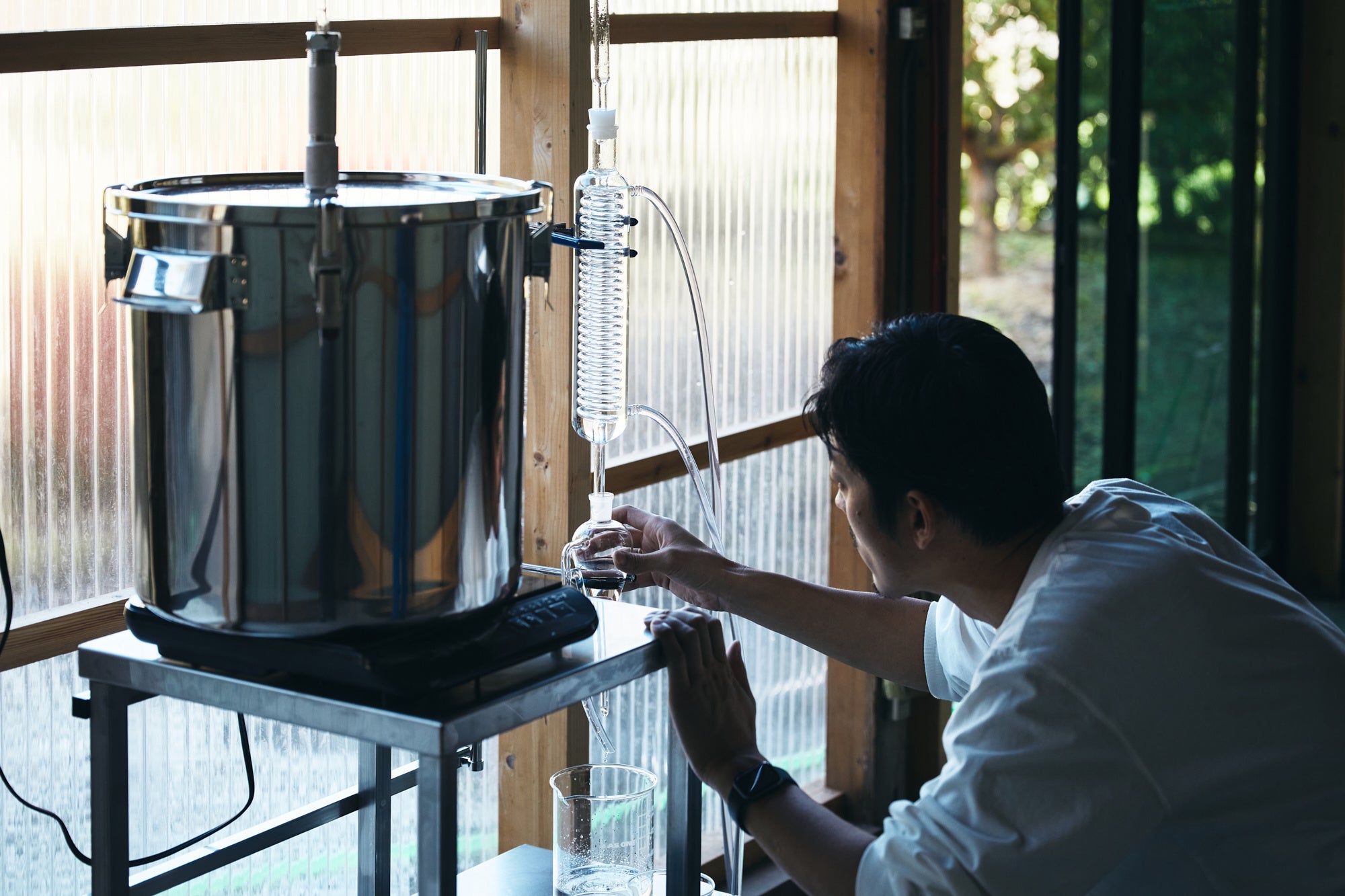 その強みは、南アルプスの麓に自社の香り工房を持ち、1つ1つの素材の調達から製造まで、すべての工程を自分たちの手で行っていることです。