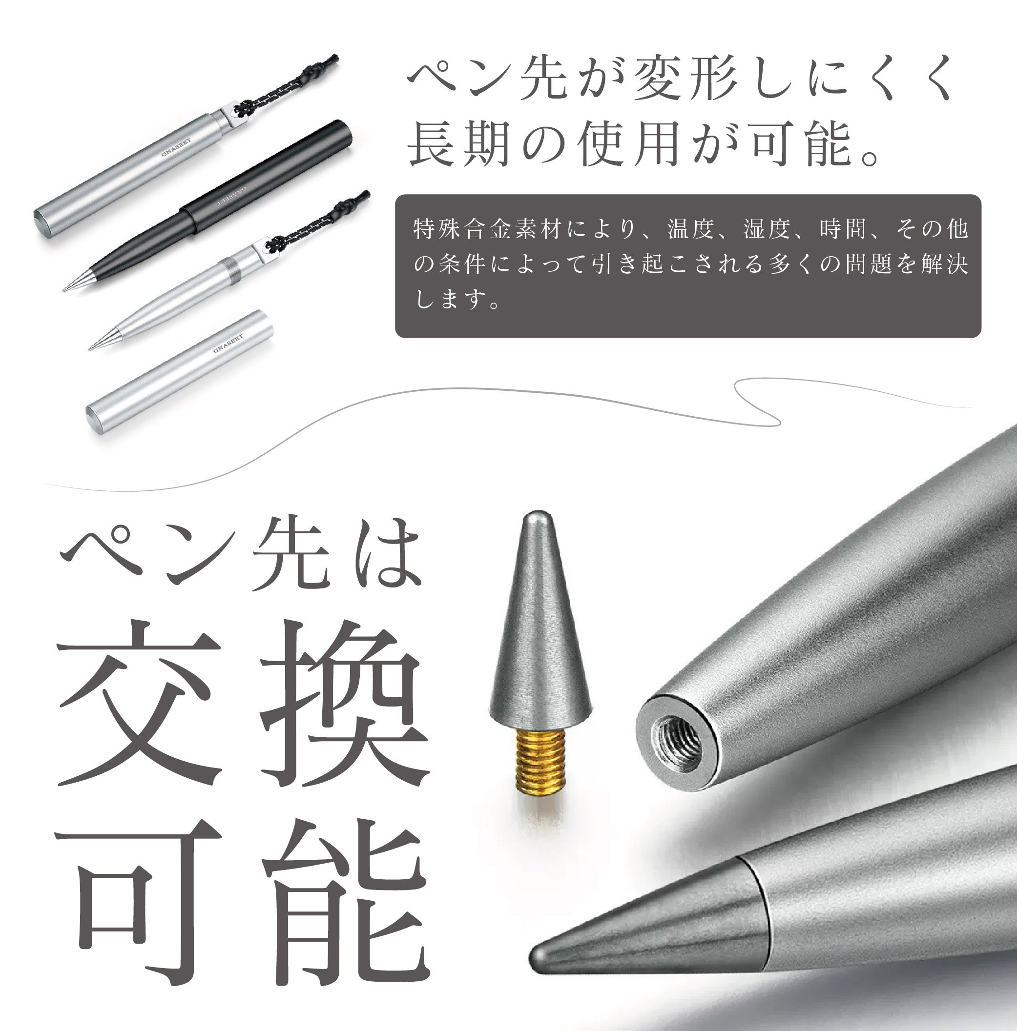 EternPenは特殊な金属を採用しておりインクレスのペンなので、従来のボールペンのように頻繁に買いなおす必要がありません。