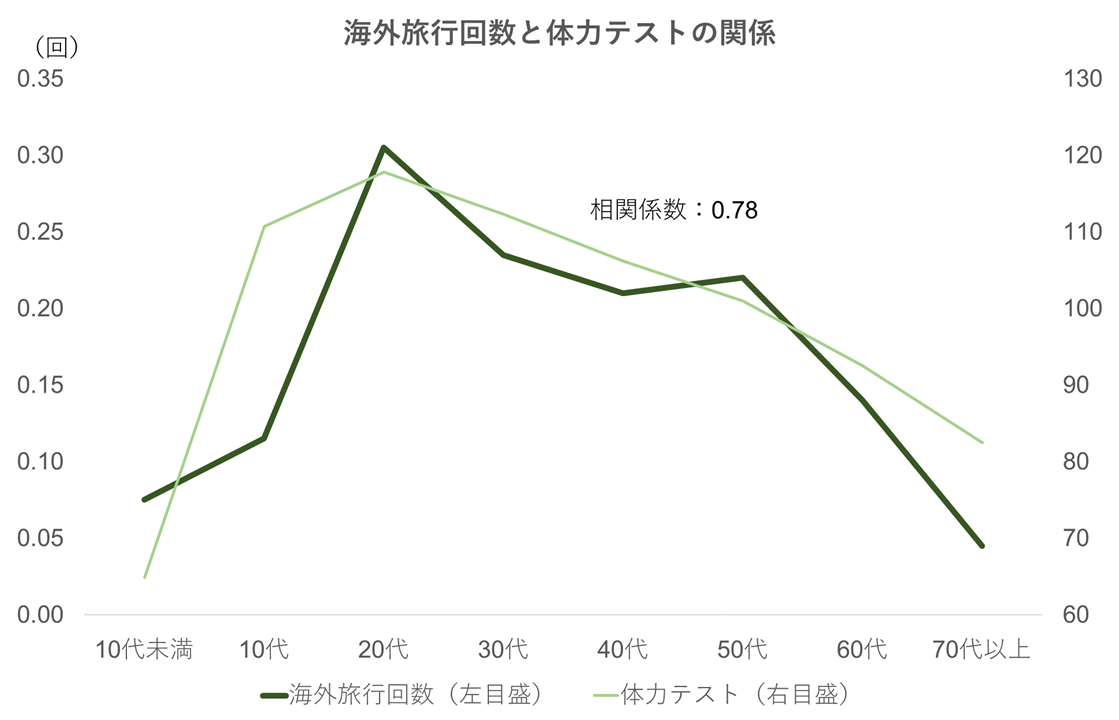 当社でもSDGsの理念である「誰一人取り残さない」旅行を実現するために、当社サービスNINJA KOTAN(衣類レンタルと旅行前コンシェルジュ)により、インバウンド客もラクに旅行できる環境を創出したいと考えています。海外旅行回数と体力テストの相関係数は0.78と高いことから分かるように、体力がない人々は旅行を諦めている実態があります。重い荷物や情報に対する旅行者の不満を解消することはユニバーサルツーリズム(すべての人が楽しめる旅行)に繋がり、旅行者層の広がりに寄与します。