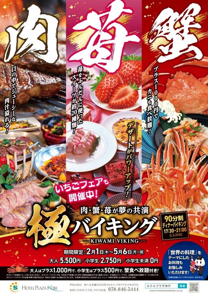 テルプラザ神⼾」では、2024年2月1日(木)より、バイキングレストランSORAにて「極バイキング」がスタートいたします。