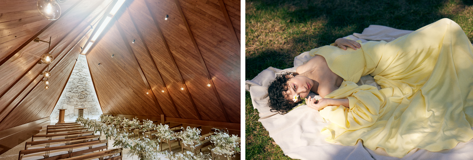 結婚式で使用された花材から天然の染料を抽出して染め上げた「ボタニカル・ダイ ドレス」