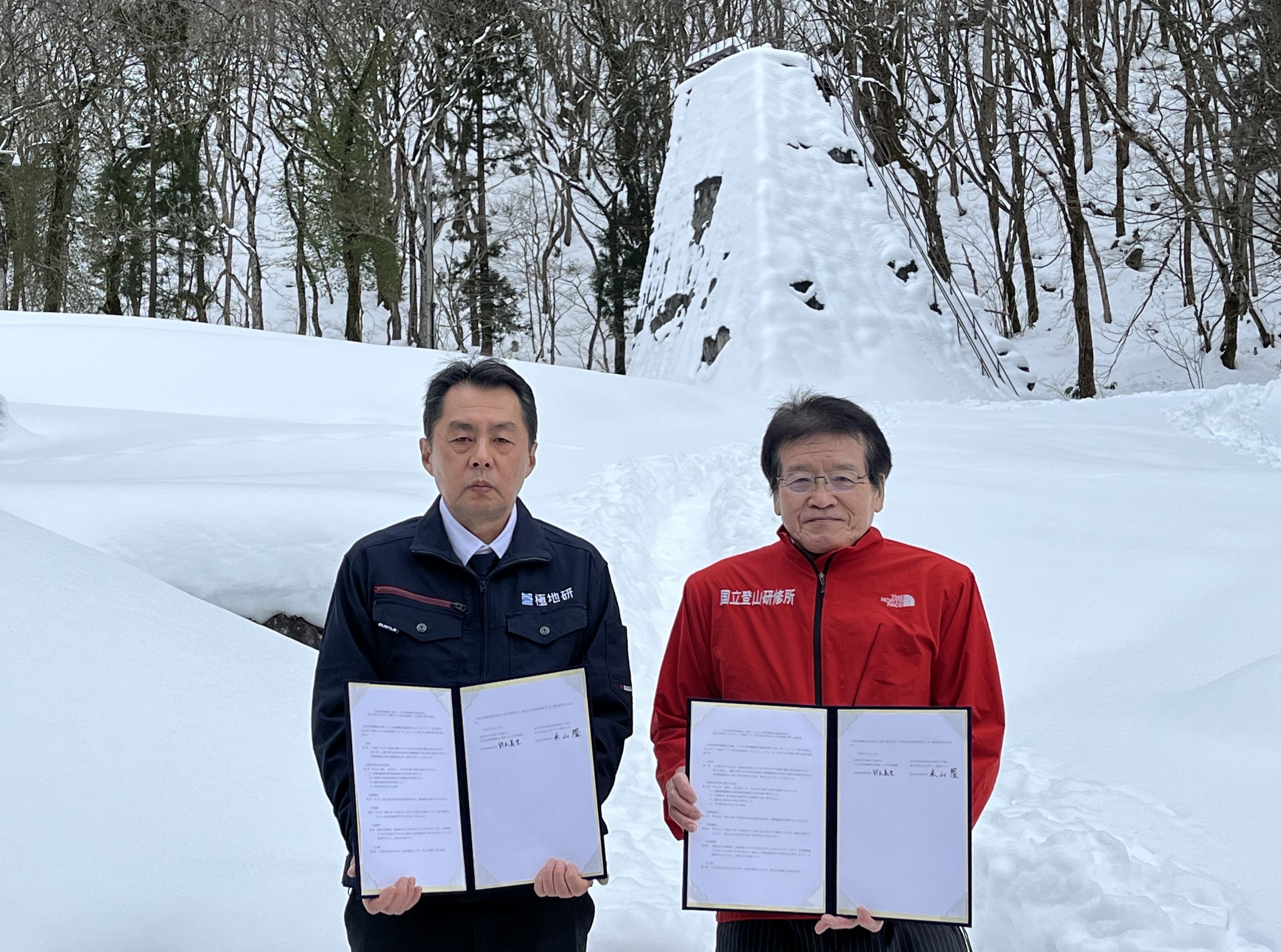 本日1月31日11時から、富山県立山町の国立登山研修所において、国立極地研究所長 野木義史、国立登山研修所長 米山隆及び関係者出席のもと、調印式が行われました。