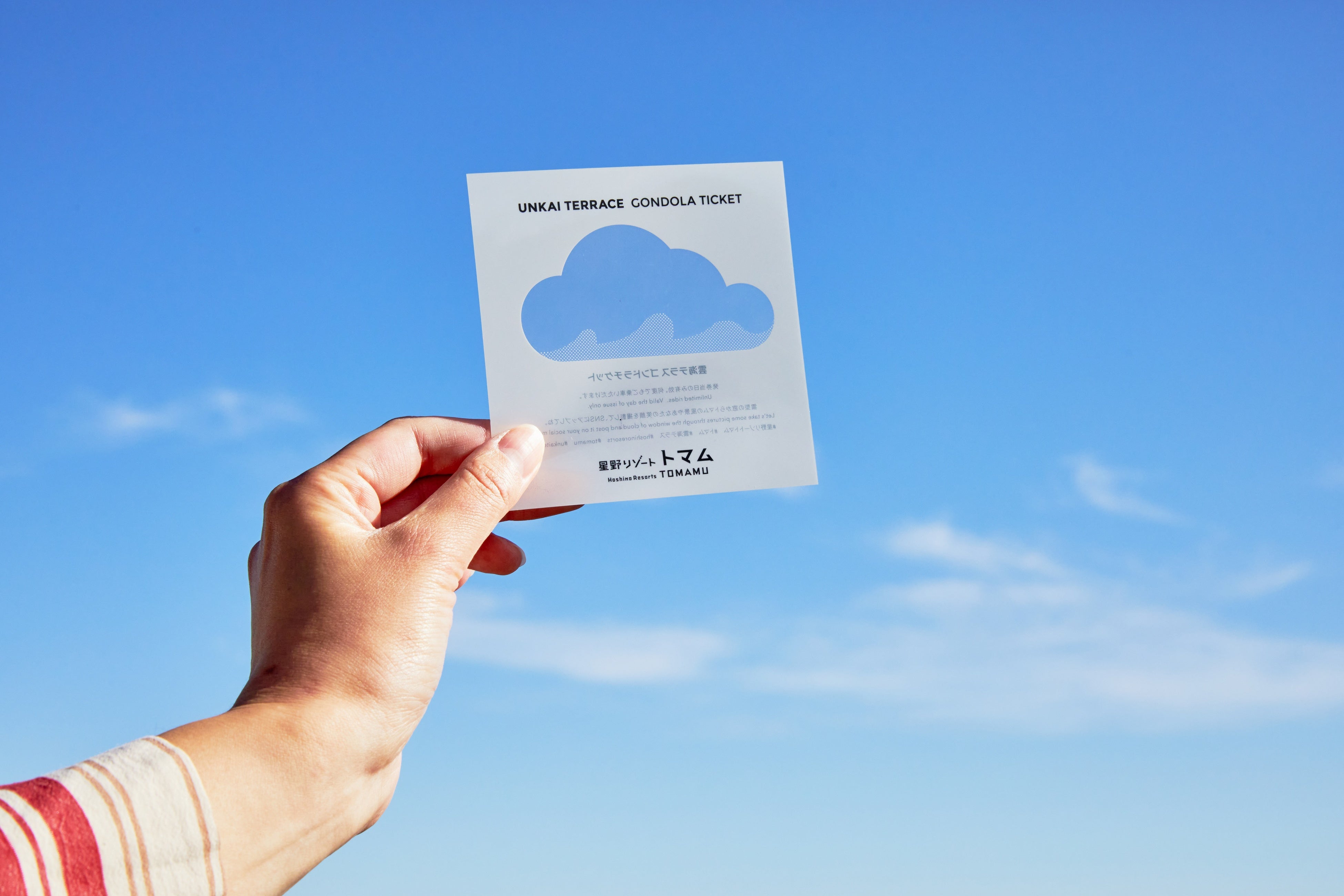 オープニングセレモニーでは、1日でも多く壮大な雲海が見られますようにという願いを込めて、お客さまと一緒にシャンパンオープンを実施。シャンパンオープンの「未来を開く」という意味になぞらえ、盛大に演出します。また、このセレモニーの入場チケットは、雲をモチーフにした本セレモニー限定のチケットです。チケットには、透かし窓のようなデザインが施され、雲海テラスから眺められる絶景を切り取ることができます。訪れた人がとっておきの景色に出会い、特別なひとときを過ごせるアイテムです。