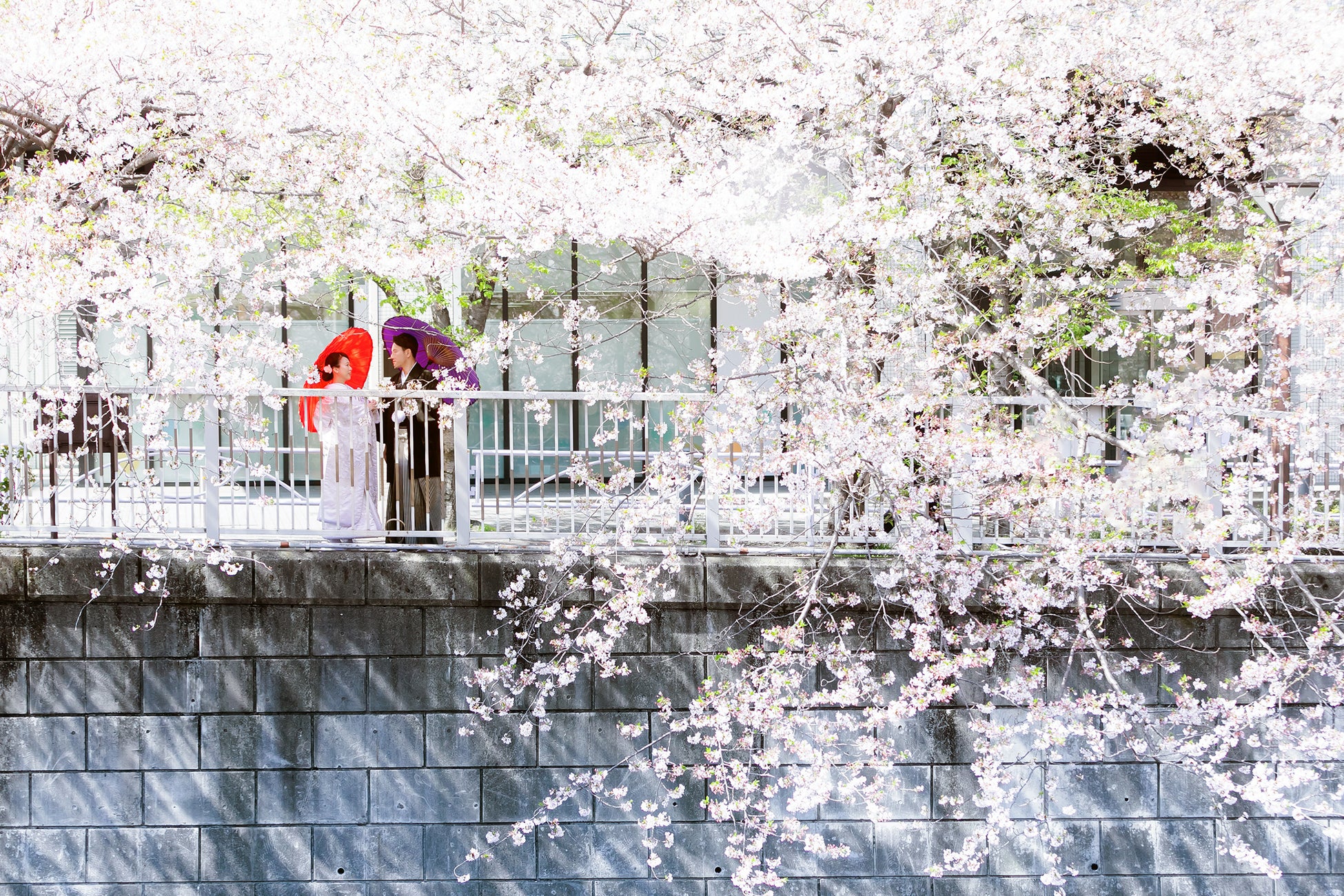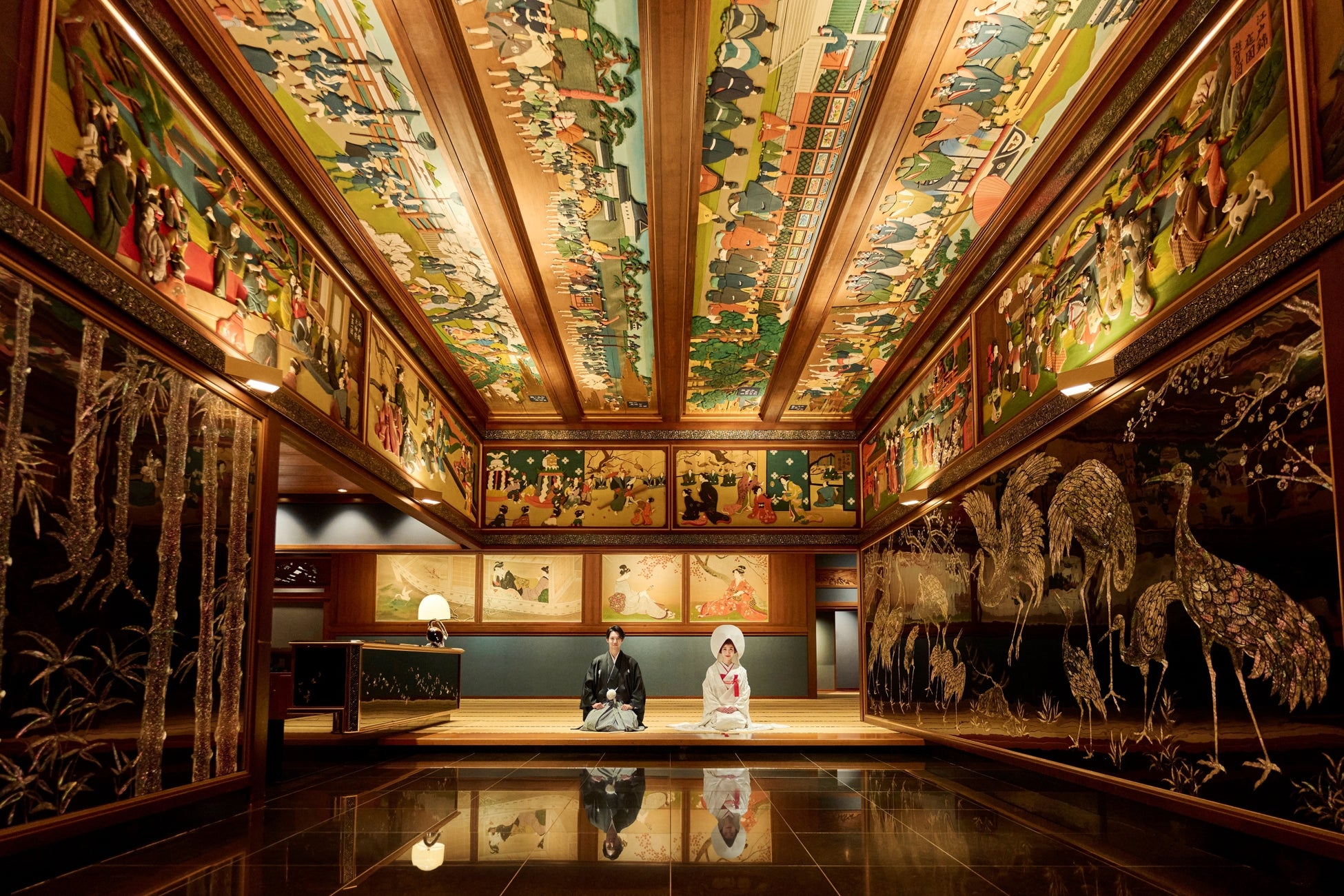 約800本もの桜が並ぶ目黒川沿いの桜並木は、お花見シーズンには300万人以上が訪れる都内有数の桜の名所です。「フォトウエディング~SAKURA~」では、春色に染まる目黒川を借景にした、この時期ならではの雅やかなロケーションに加え、ホテル雅叙園東京内で最も人気のフォトスポット「和室宴会場玄関」での撮影が叶います。和室宴会場玄関は、昭和初期の創業以来大切に受け継がれてきた絢爛豪華な日本画や美術品を移築し、ホテル雅叙園東京の前身である目黒雅叙園の玄関を再現した唯一無二の空間です。この2つの絶景が、新郎新婦おふたりの門出にふさわしい特別な瞬間をドラマティックに彩り、一生の想い出に残るフォトウエディングを実現いたします。