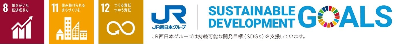 JR西日本ホテルズは、持続可能な開発目標(SDGs)を持ち、地域と共に、お客様一人ひとりの豊かな人生を広げます。今回ご案内の取り組みは、SDGs 目標の8番、11番、12番に貢献するものと考えています。