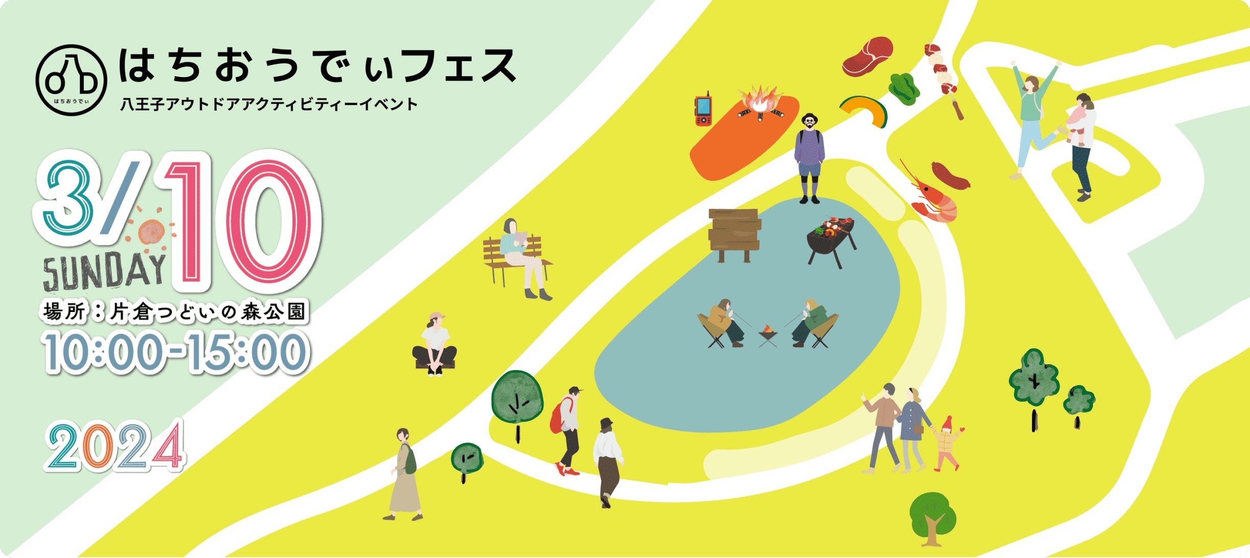 八王子商工会議所(サイバーシルクロード八王子)は「アウトドアをテーマに産業活性化」を目指した取組の一環として、八王子市片倉町の片倉つどいの森公園でアウトドア体験を気軽に楽しめる「はちおうでぃフェス」を2024年3月10日(日)に開催いたします(延期の場合:3月24日(日))。