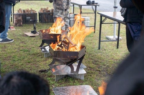 子どもから大人まで楽しみながら学べるアウトドア・防災体験コーナーも用意。薪割りや火付け、焚き火、火消しが体験できます。キャンプに詳しい方や消防署員の方が傍にいるので安心して楽しめます。