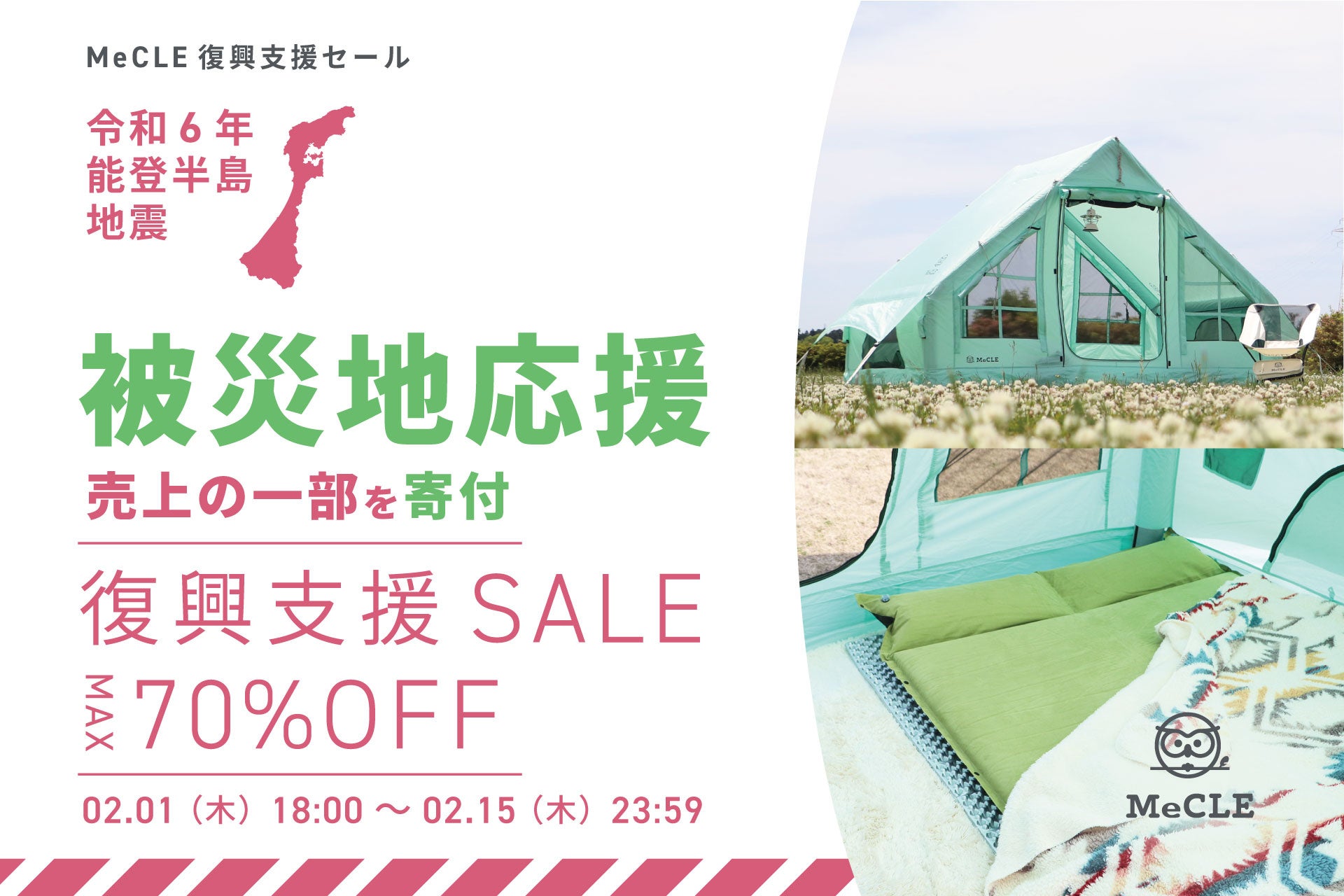 MeCLEは2024年2月1日から15日までの期間、復興支援セールを公式オンラインショップ(https://mecle.official.ec/)にて実施し、MeCLE商品の売上の一部を災害の復興に役立てられる支援金として寄付することに決定いたしました。