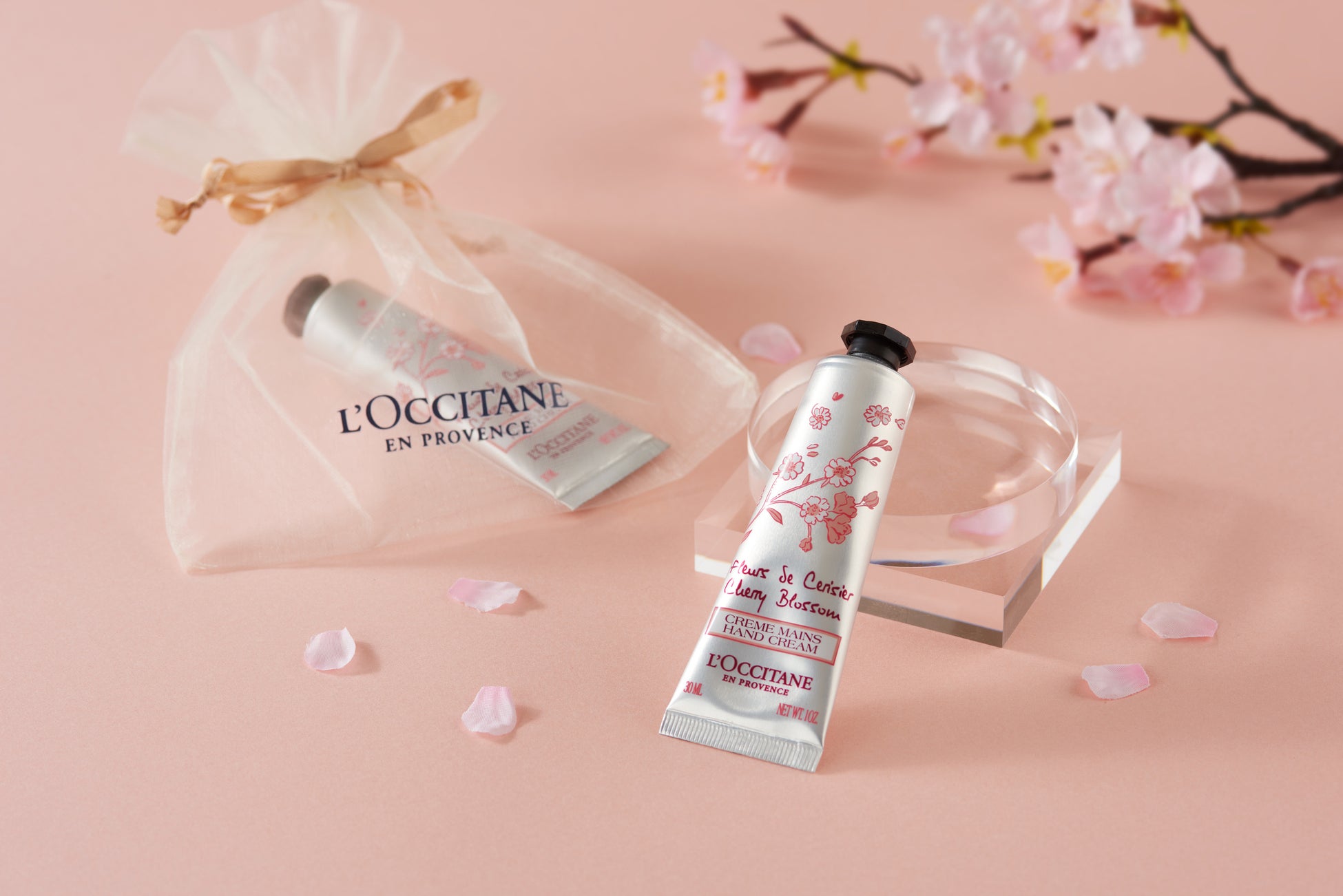 春期限定ショートステイプラン『Spring Gift with ロクシタン』では、特典として「チェリーブロッサムソフトハンドクリーム30ml」を1泊1名さまあたり1個プレゼントいたします。優しく爽やかな春の桜の香りで、癒しのひとときをお愉しみください。