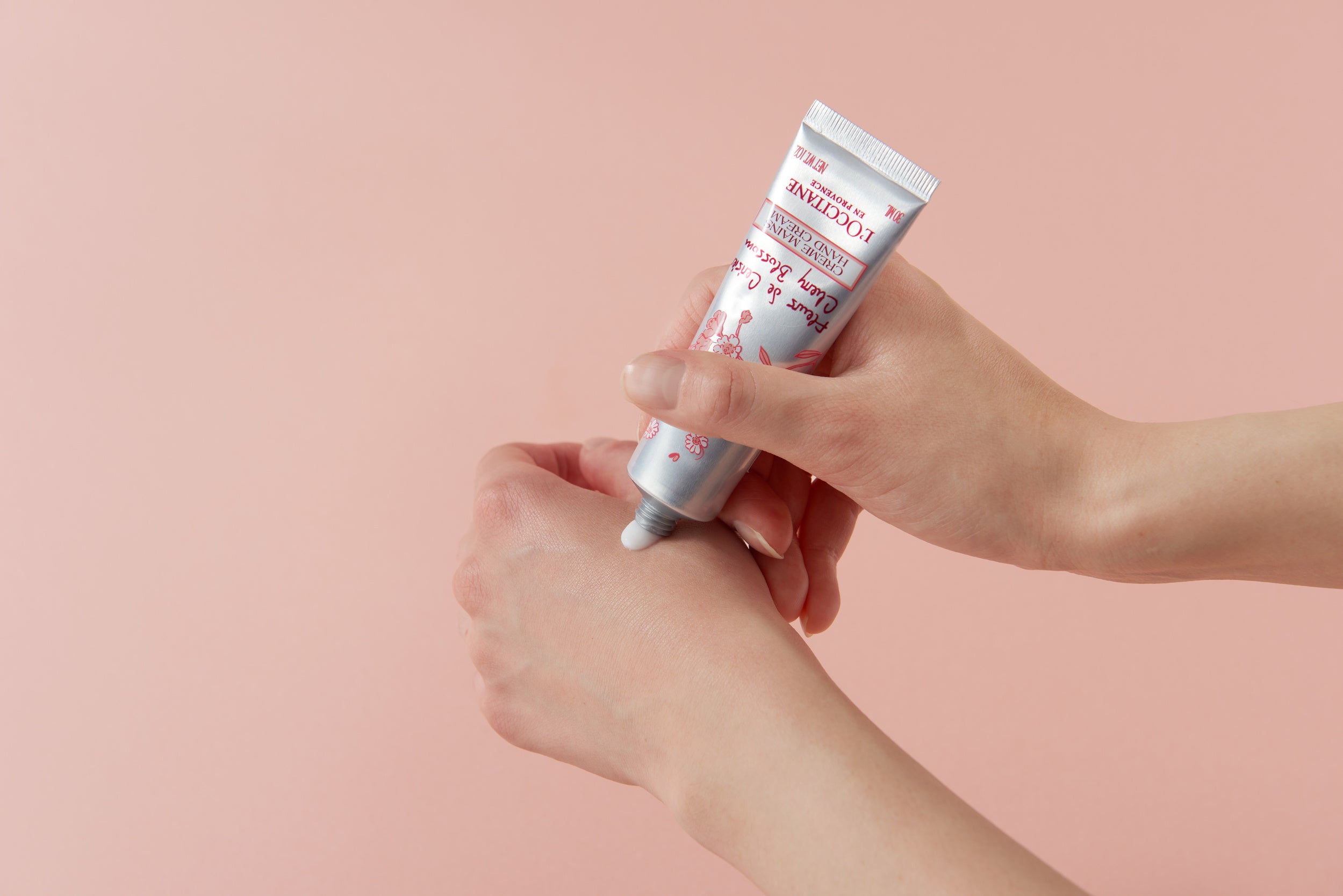 桜の花びらのようになめらかな手肌に整えるハンドクリーム。きゅんとする初恋の甘ずっぱい香りを、シアバター(*)のうるおいに閉じ込めて、いつでもどこでも指先に。滑らかでみずみずしいテクスチャーで、季節を問わずいつでも気軽に手肌を潤すことができます。