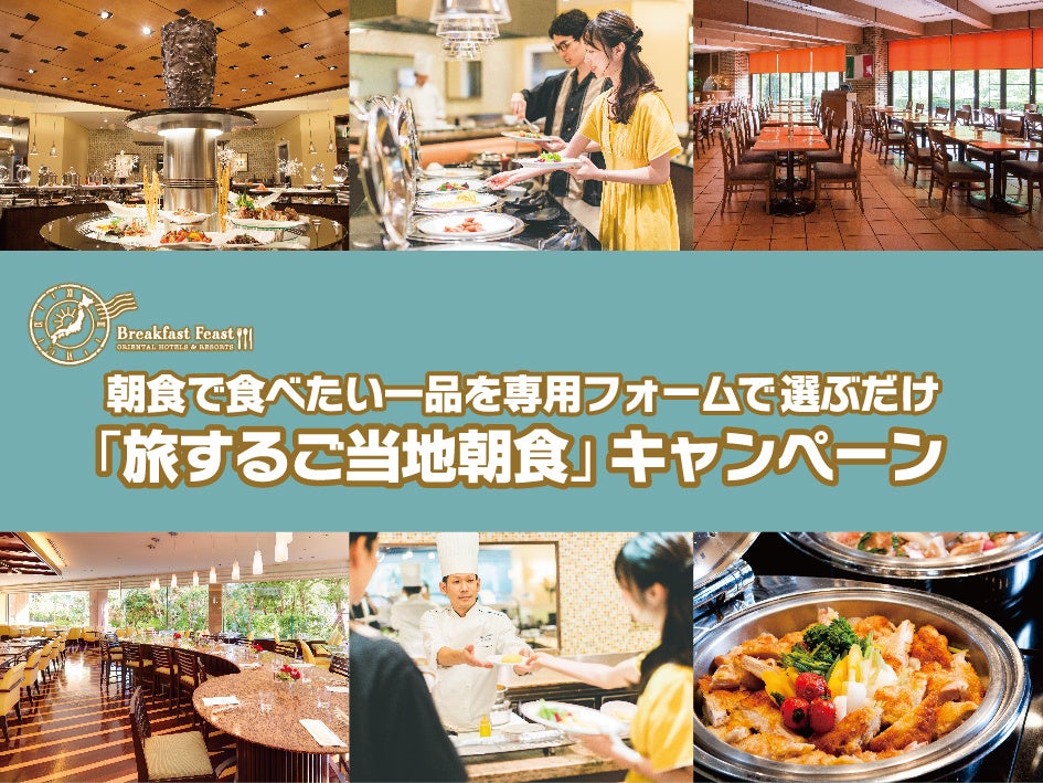 2023年12月からスタートした「旅するご当地朝食」キャンペーンは、グループホテル10施設のレストランから毎回異なる2つのエリアのレストランを選抜し、それぞれのご当地朝食メニュー3種類の中からお好きなメニューに投票いただき1位を決める企画です。第2弾となる今回は、千葉・沖縄編。オリエンタルホテル 東京ベイ(千葉県)からは、浦安にゆかりの深い食材を使用した「べか焼きそば」、千葉の特産である醤油を使った「黒アヒージョ」、寒い季節にぴったりの「いわしのつみれとかぶのみぞれ汁」の3品がエントリー。オリエンタルホテル 沖縄リゾート&スパ(沖縄県)からは、沖縄県民に愛され続けるローカルメニュー「もずく天ぷら」や「ポーク玉子」、「タコライス」の3品がエントリーいたします。