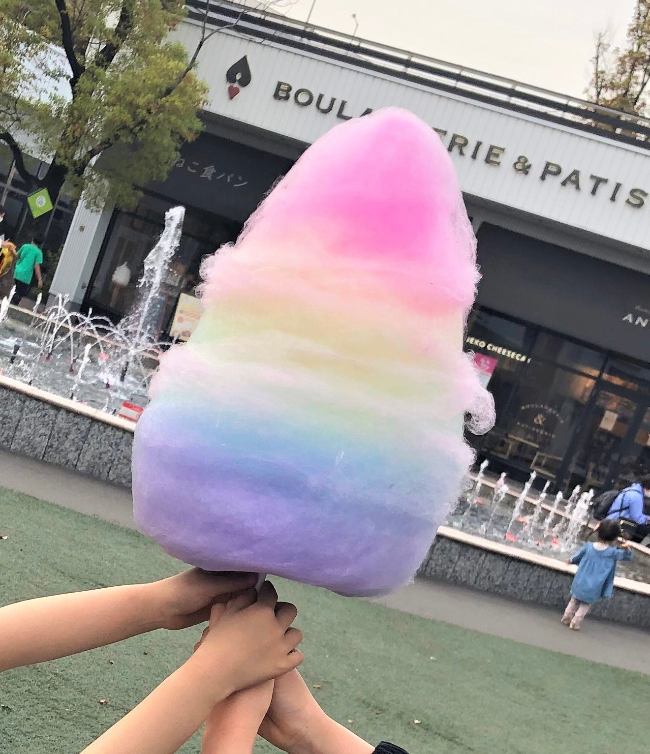 七色×銀平です。フルーツ味のカラフルでビックなレインボー綿菓子が人気です。定番のチョコバナナ、キャラメルポップコーンもよろしくお願いします。