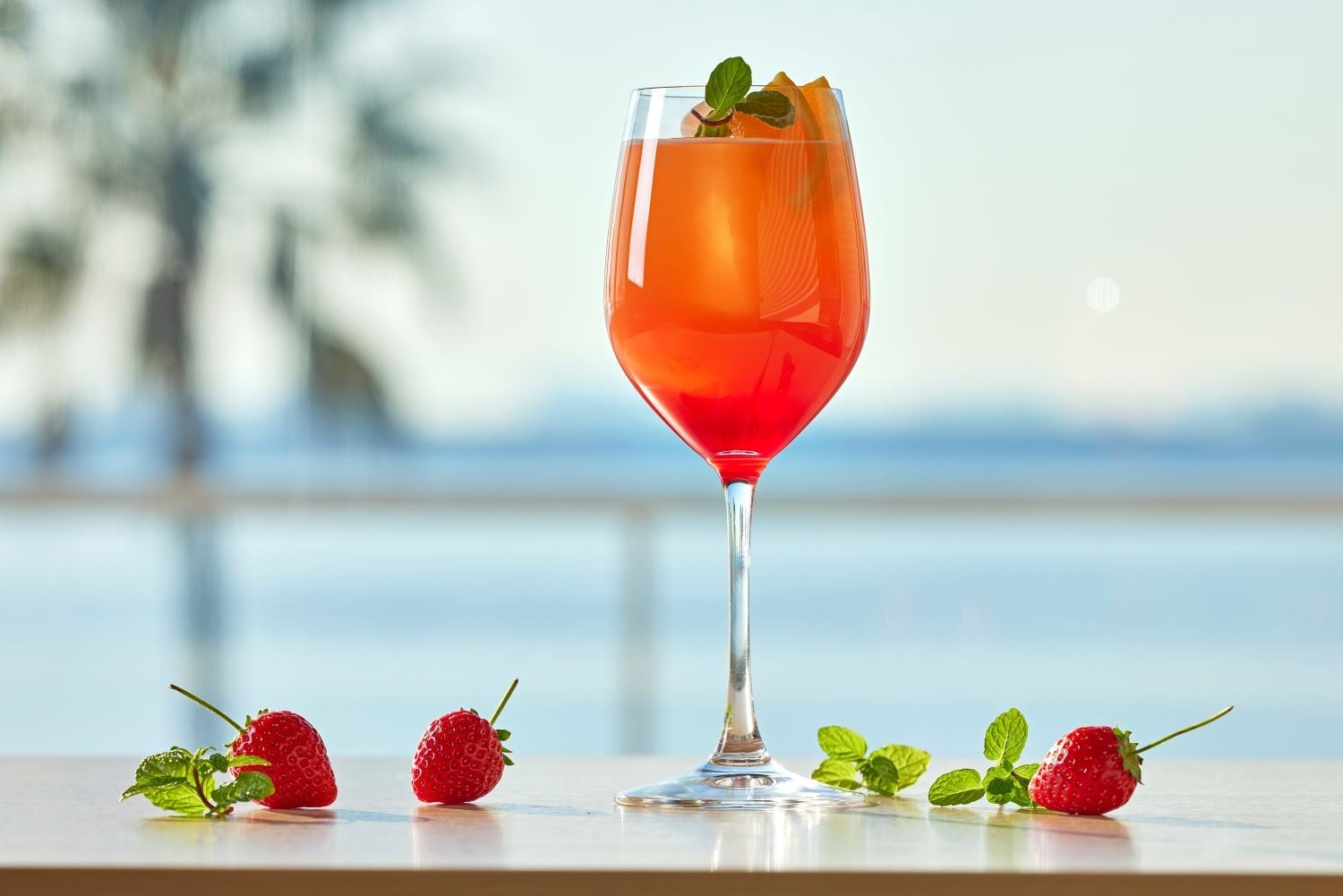 『ストロベリースイーツプレート&パフェセット』をご注文のお客様には、併設のバーカウンターから提供する『ストロベリーのノンアルコール初恋フィズ』を特別ご優待料金にて召し上がりいただけます。