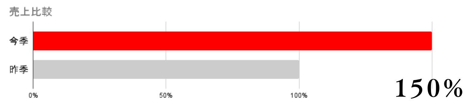 今季(2023-2024シーズン)は、暖冬シーズンにもかかわらず、昨季(2022-2023シーズン)と比べて売上が1.5倍となりました。売上増加には、2つの要因があります。