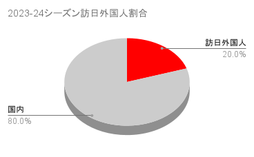 スキー場への訪⽇外国⼈来場者数は昨年度の5,000⼈から10,000⼈に倍増、全来場者のうち20%を占める状況となりました。