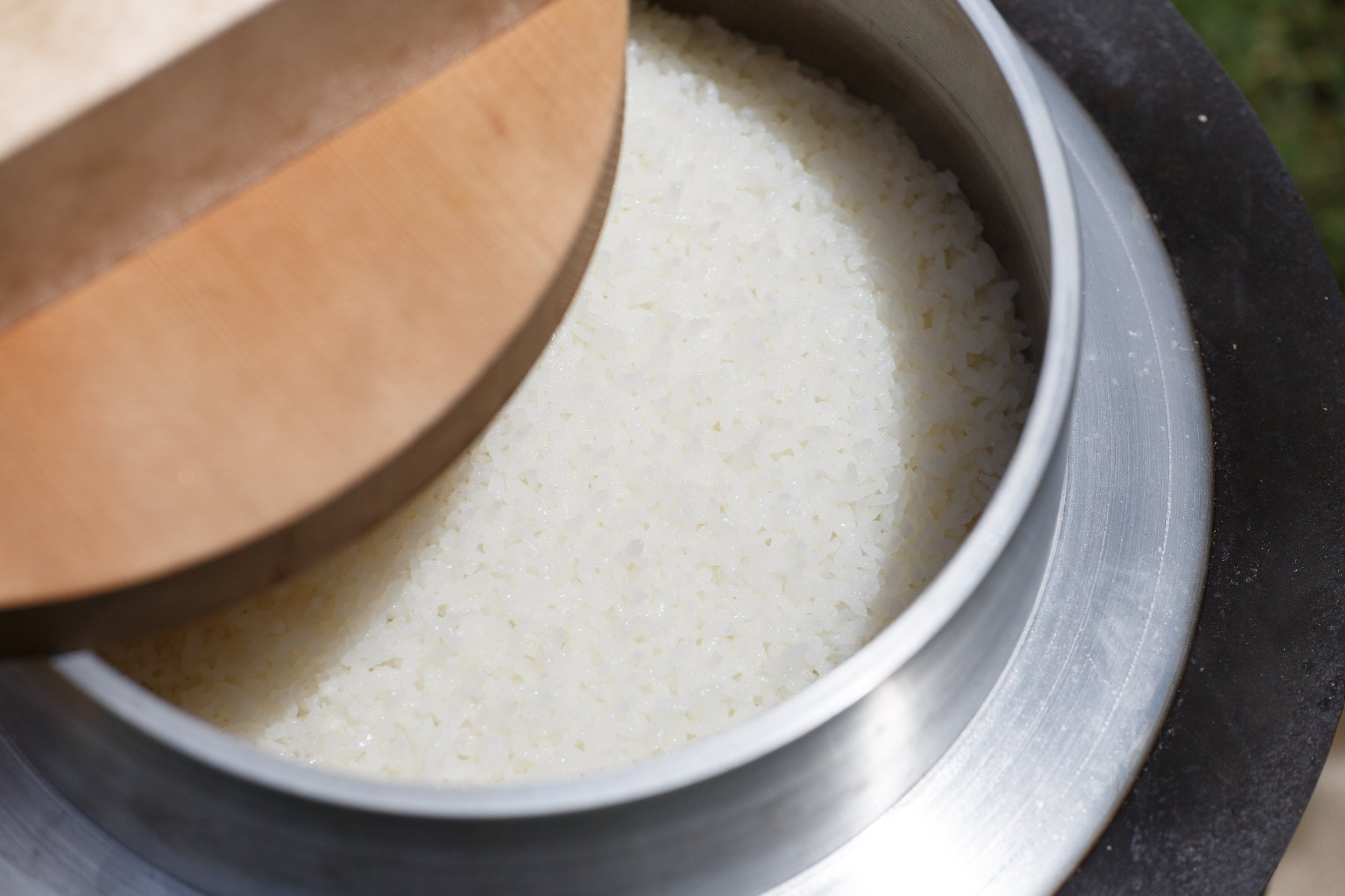 各回の体験後には、田んぼの畔で昔ながらの炊飯方法であるかまどを使用した羽釜での炊飯を体験。炊き立てのごはんでおむすびを結びます。お米農家が一番おすすめするお米の食べ方として、田んぼの畔で炊き立てのごはんを食します。お米の味わいや、手間暇かけて作った食事のおいしさを感じる体験です。
