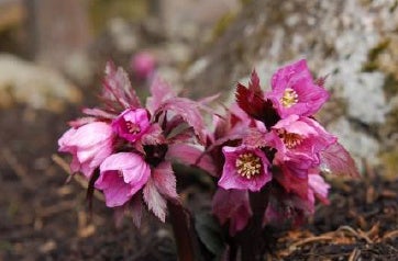 「幻のクリスマスローズ」と呼ばれ、クリスマスローズの仲間の中で唯一、アジアに分布しています。ジャイアントパンダやハンカチノキを発見したプラントハンターのアルマン・ダヴィッド神父が1869年に中国の四川省付近で採集しており、当時その近辺をチベットと呼んでいたことから、学名に「チベタヌス」と入っています。当植物園では自生地に近い環境で植栽しています。