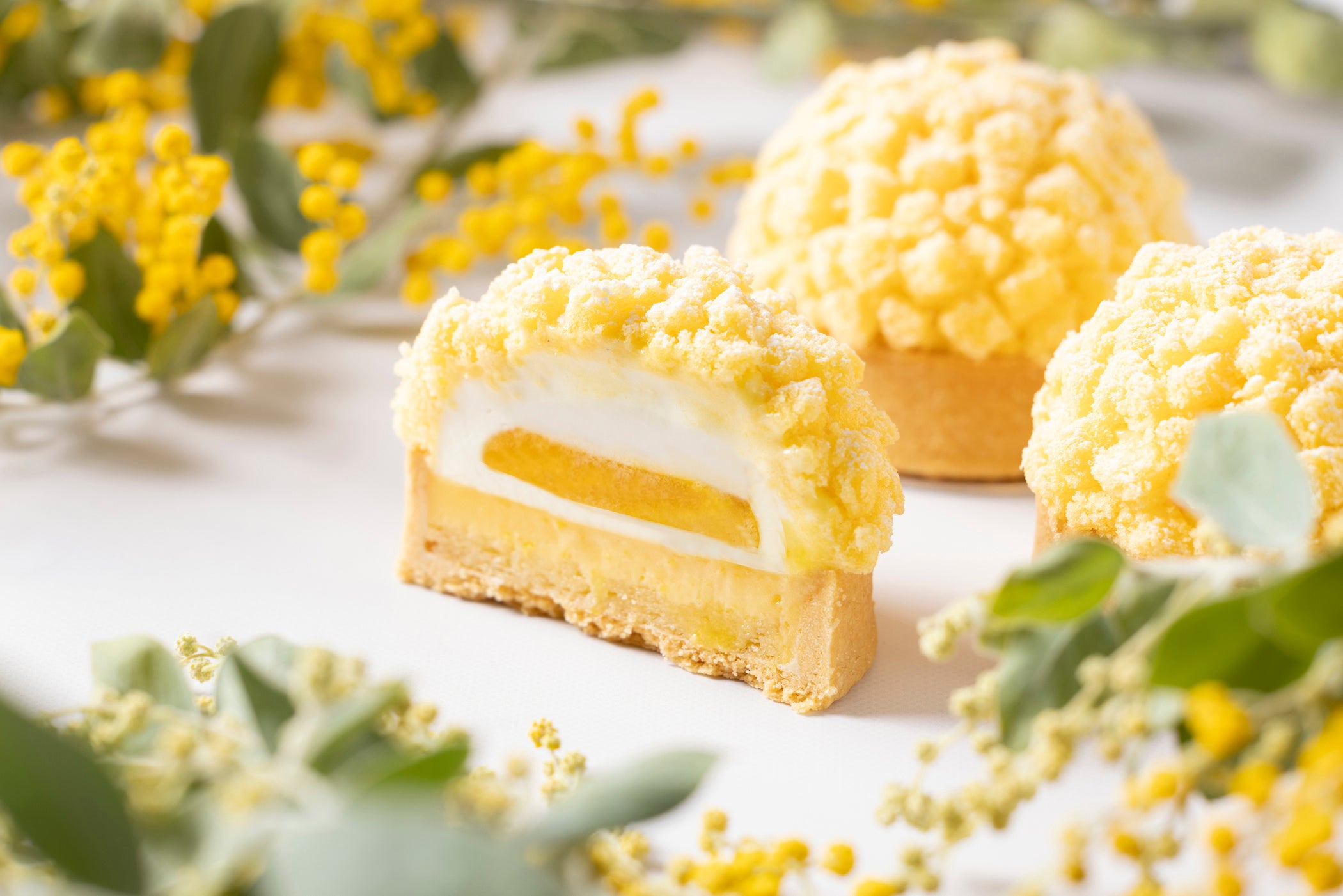 ケーキの表面に細かく刻んだスポンジをあしらい、ころんとした丸みが可愛らしいミモザの花を表現する女性パティシエが考案したタルトです。“いきいきと輝く女性”からインスピレーションを受け、味のキーポイントとなるエキゾチックジュレに角切りのパイナップルを忍ばせ、果肉感、果実味をしっかりと感じられる華やかな味わいに仕上げます。爽やかな酸味とやさしい甘み、サクサクのタルト生地のハーモニーをご堪能ください。女性へ敬意を込めて感謝を伝える日でもある「ミモザの日(国際女性デー)」のギフトとしてしてもおすすめの一品です。