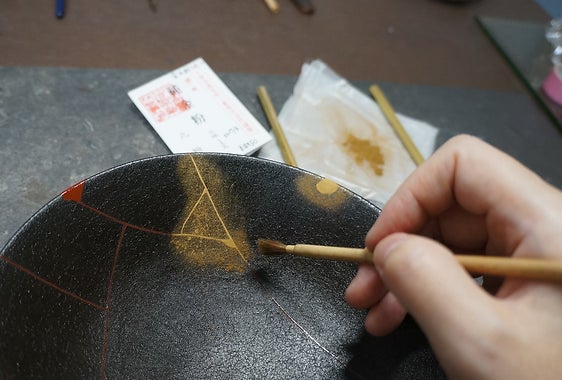 有田焼や小石原焼の器を中心に、破損したものを芸術に昇華させる「金継ぎ」を体験