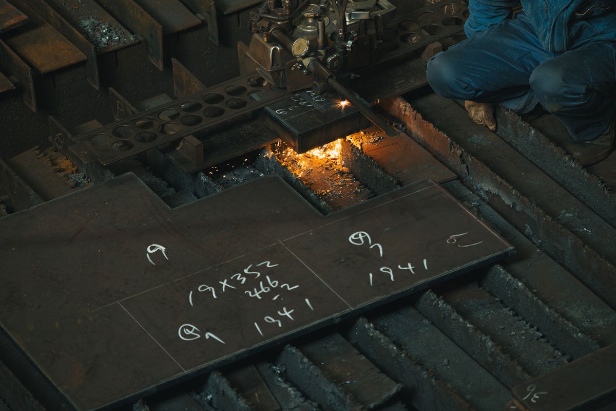 「MAJIN」を手掛ける、石道鋼板株式会社は厚板鋼板と呼ばれる板状に圧延した「厚さ6mm以上の鋼材」のガス切断加工および卸売を専門に行い、優れた技術が必要でかつニッチ分野の100mm前後の極厚加工を得意とし、独自のノウハウで、建築物や造船、産業用機械部品の基となる鋼板を提供してきたモノヅクリの企業。