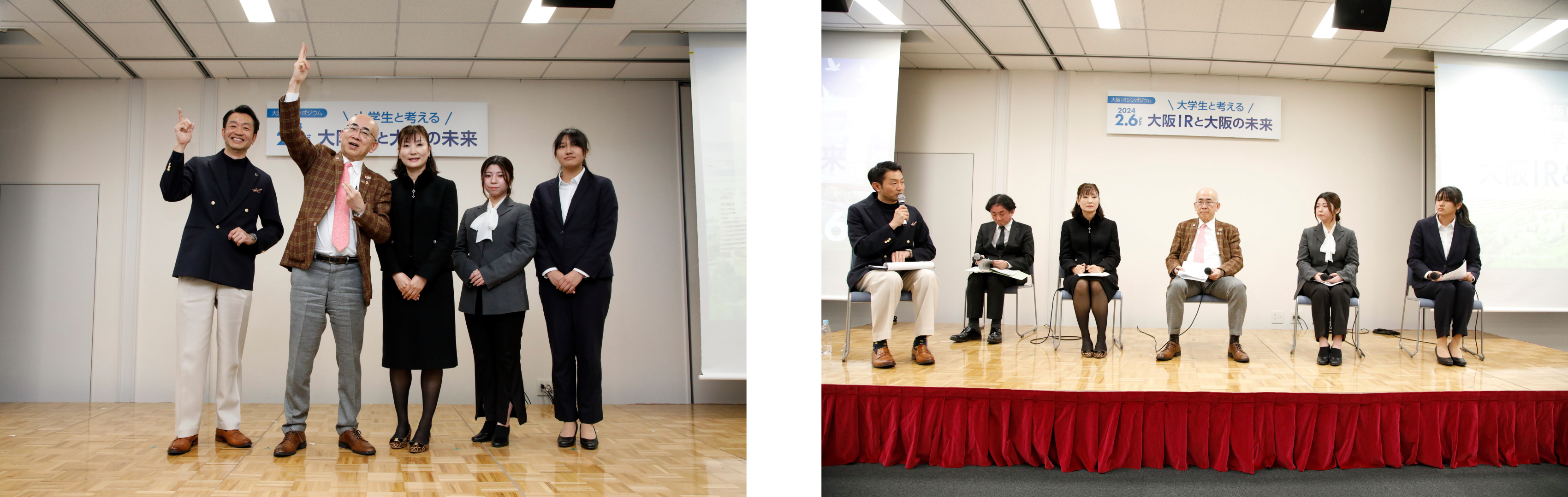 また、第二部では、学生の代表者と有識者が、「大阪IRをきっかけに大阪・関西をより盛り上げていくためには」をテーマにディスカッションを実施。「大学生は世界に出るのが難しいので、IRを通して世界と交流できる場になればいい。」など、学生ならではの意見も挙げられ、未来を担う若い世代とともに「大阪の未来」について考える時間となりました。