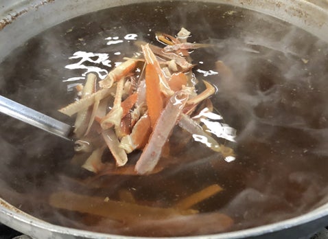 お鍋のスープは松葉カニの殻から丁寧にとる秘伝の御出汁