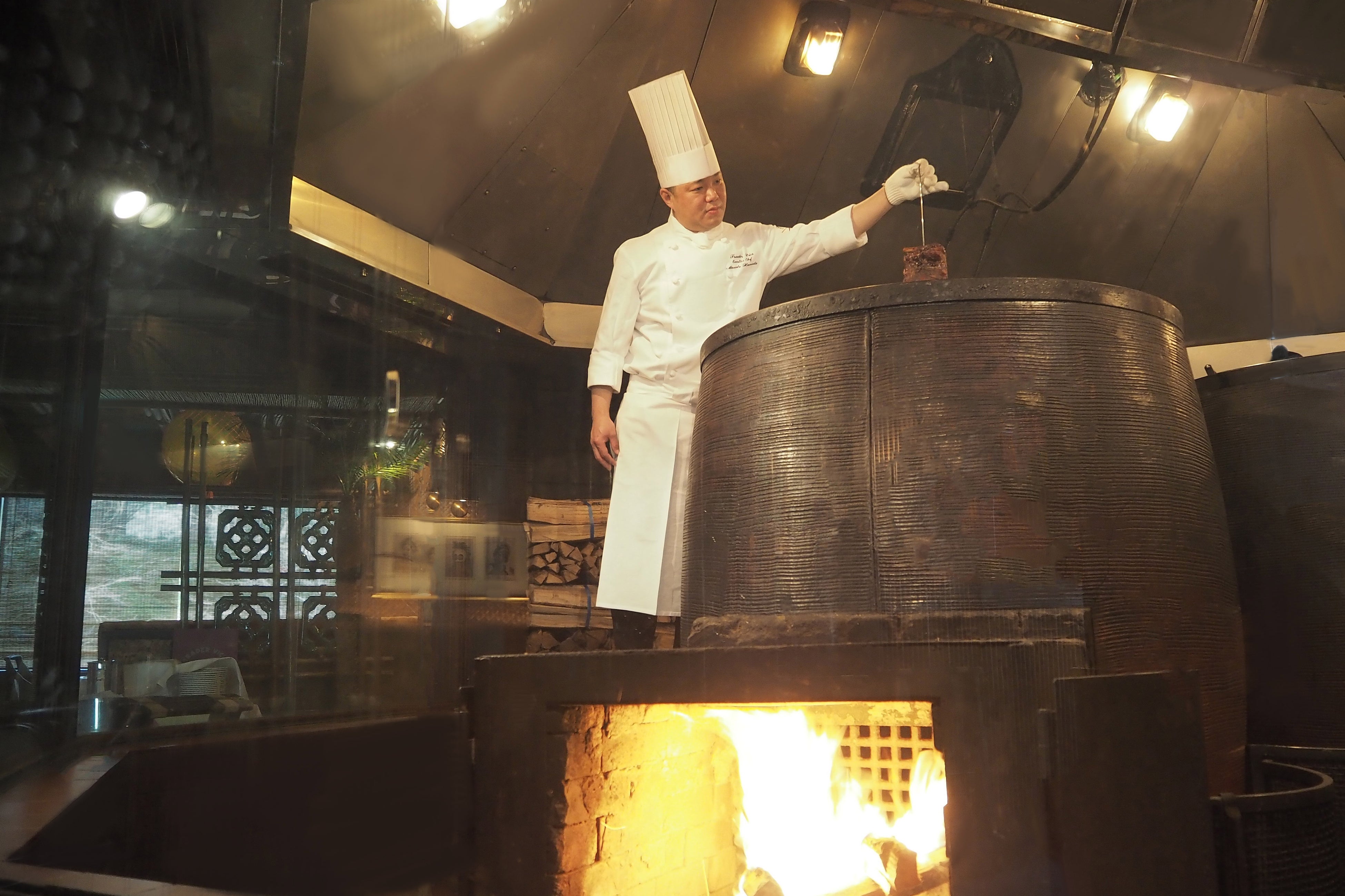 世界中のトレーダーヴィックスに存在する薪窯の中でも、世界一を誇る高さ2メートルの“魔法の薪窯”を2つ有する東京店では、この薪窯を使用したメニューの数々をお愉しみいただけます。直火とは異なり、間接的に燻し焼き上げられることで旨みをギュッと閉じ込められたお肉や魚は、ジューシーで芳醇な香りに仕上がります。