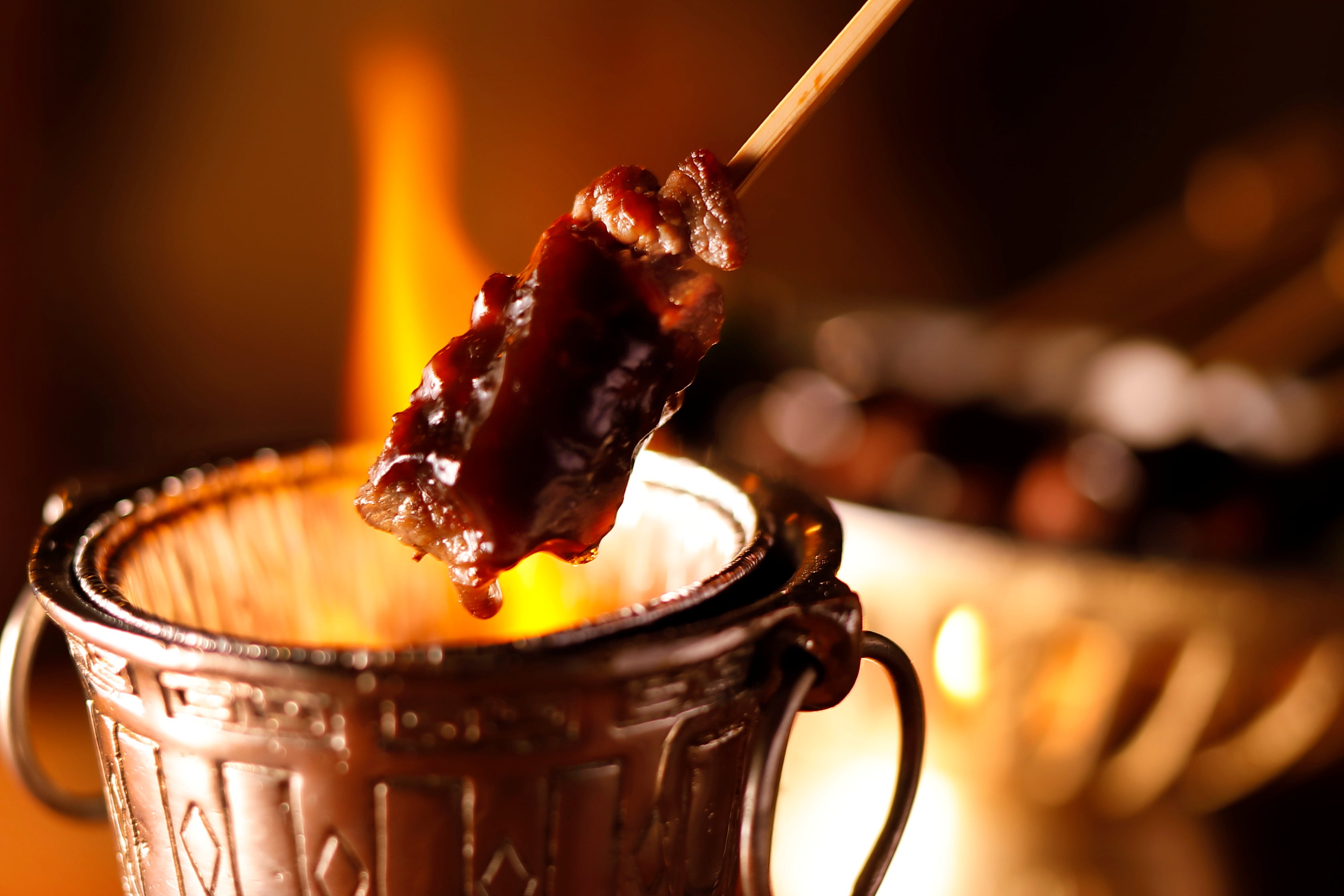 串に刺した薄切りの牛肉を、ご自身でお好みの焼き加減に炙ってお召し上がりいただく体験型メニュー。ふわトロの食感がクセになること間違いなし。