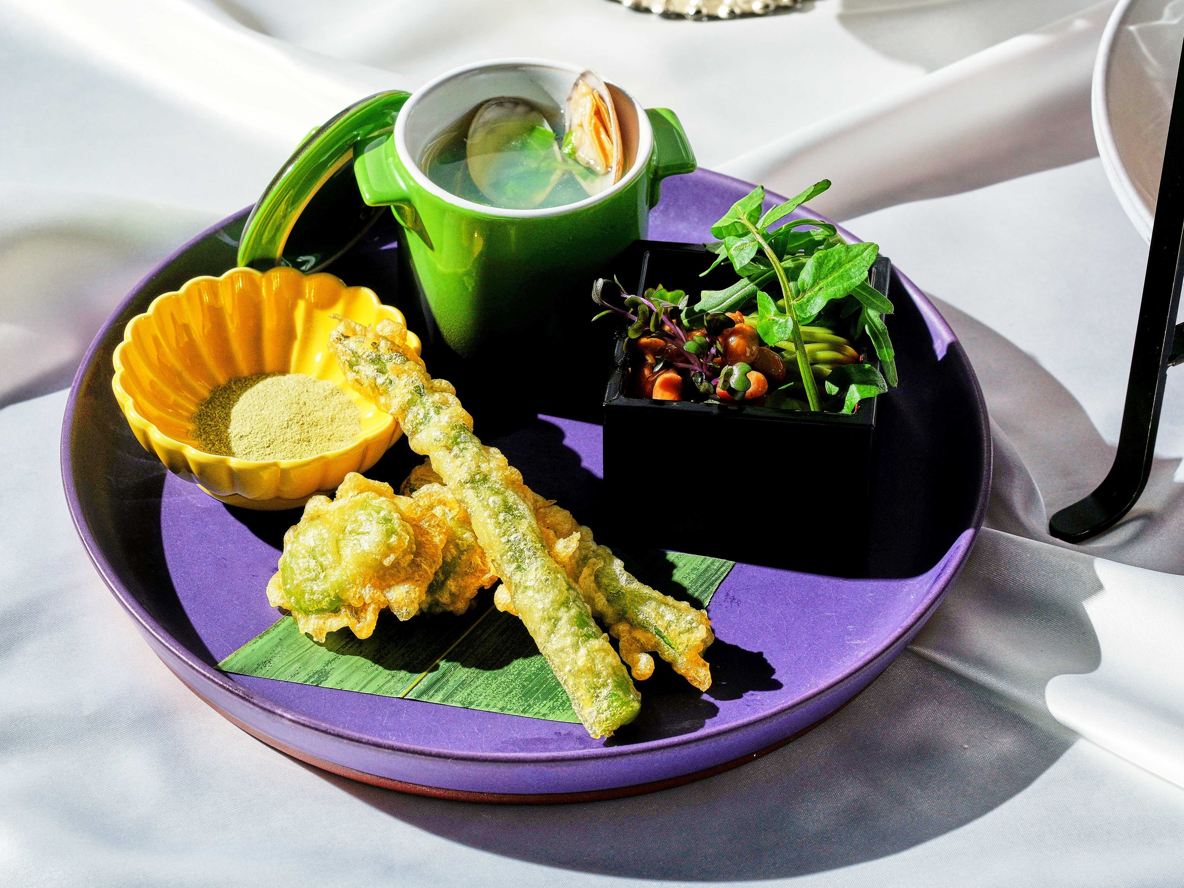 ・アスパラとソラマメのフリット 抹茶塩で