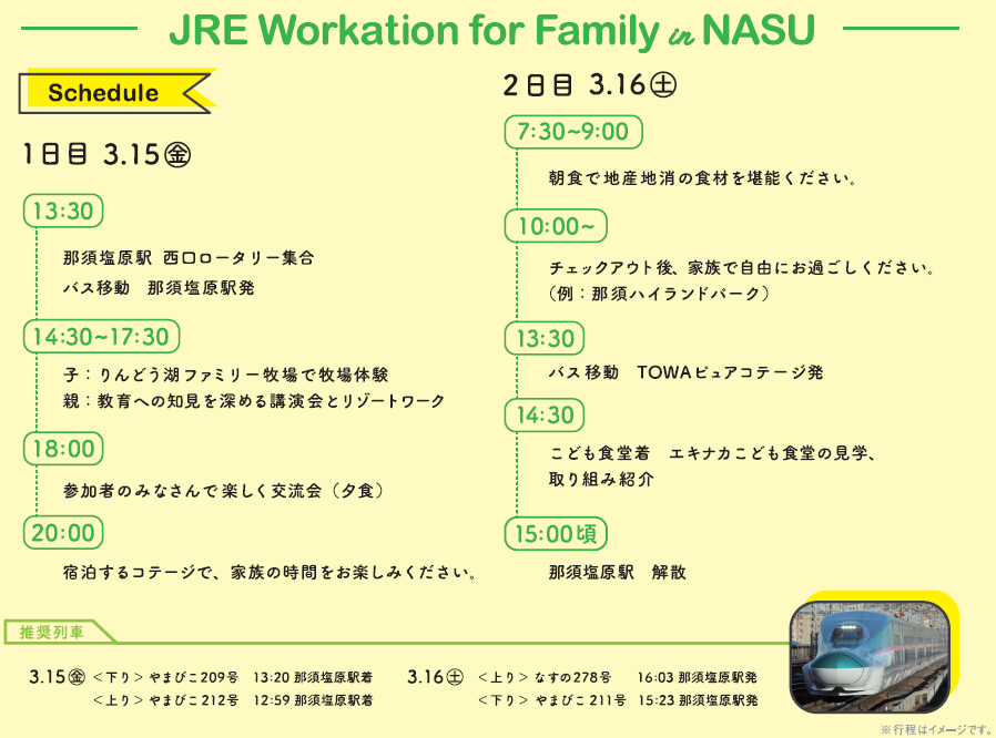 ファミリー向けの新しいワーケーション商品「JRE Workation for Family in NASU」を発売します!