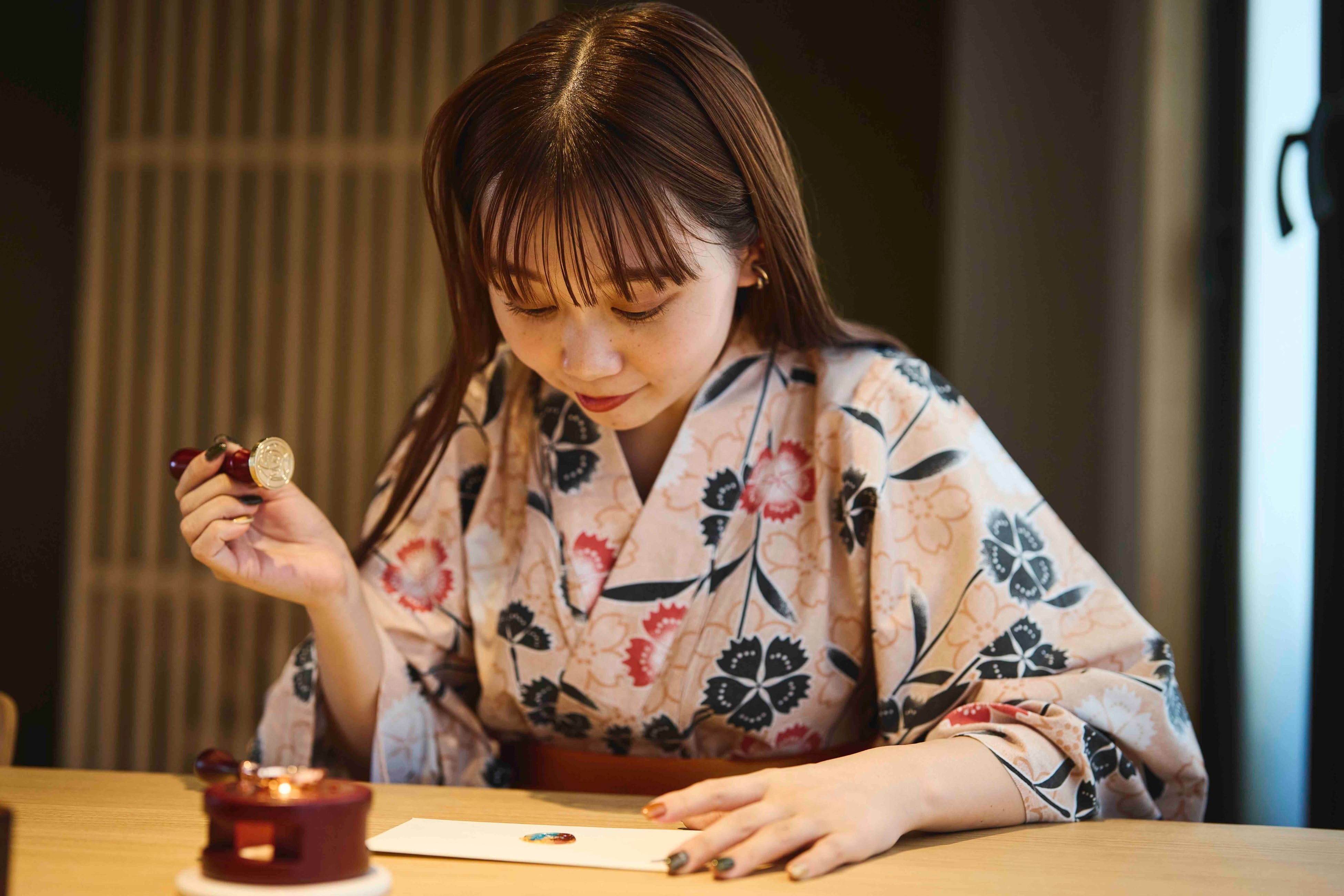 このプランは、まず手紙を書くためのインク作りから始まります。9色の原料の組み合わせにより900色通り以上のインクを作ることができます。スマートフォンでのコミュニケーションが当たり前の世の中で「時間を使って、書くまでの一連の流れを楽しむ」体験をお楽しみください。自分で作ったインクはお持ち帰りいただけます。インク作り体験は写真家・コラムニストの古性のちとコラボレート。湯河原の土地や季節の色、感情に着想を得たオリジナルインク5種類を開発。インク作り体験で、実際にコラボカラーのインクを作ることもできます。