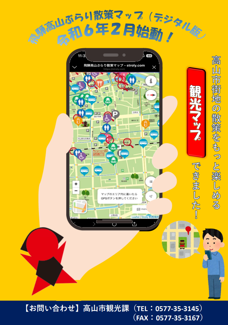 高山市では令和6年2月1日から、これまで紙媒体で配布していた中心市街地の観光施設などの情報をまとめた「ぶらり散策マップ」のデジタル版を導入しました。