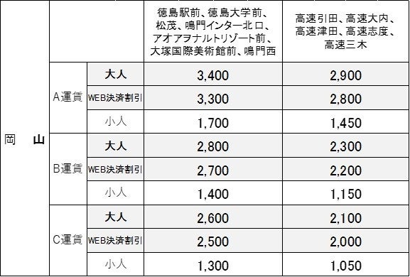 路線名:高速バス岡山~大塚国際美術館~徳島線