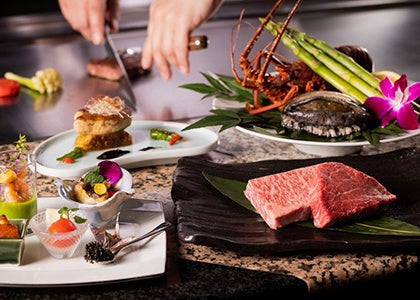 新宿ワシントンホテル新館1階に位置する当レストランは、カウンター席とテーブル席合わせて全45席を有しており、カウンター席ではシェフが目の前でステーキを焼き上げます。新たな幕開けにご用意するメインの肉料理は、柔らかな赤身の中にある“艶さし”と呼ばれるきめ細かな霜降りが持ち味の佐賀牛と、香り豊かな口どけの良い神戸牛の2種類。対面調理ならではの焼き音や食欲をそそる芳ばしい香りなど、五感でお食事を楽しんでいただけます。おすすめのメニュー「琥珀(こはく)」では、佐賀牛または神戸牛(※神戸牛は要追加料金)に加えて、フォアグラや伊勢海老など海の幸もご提供いたします。