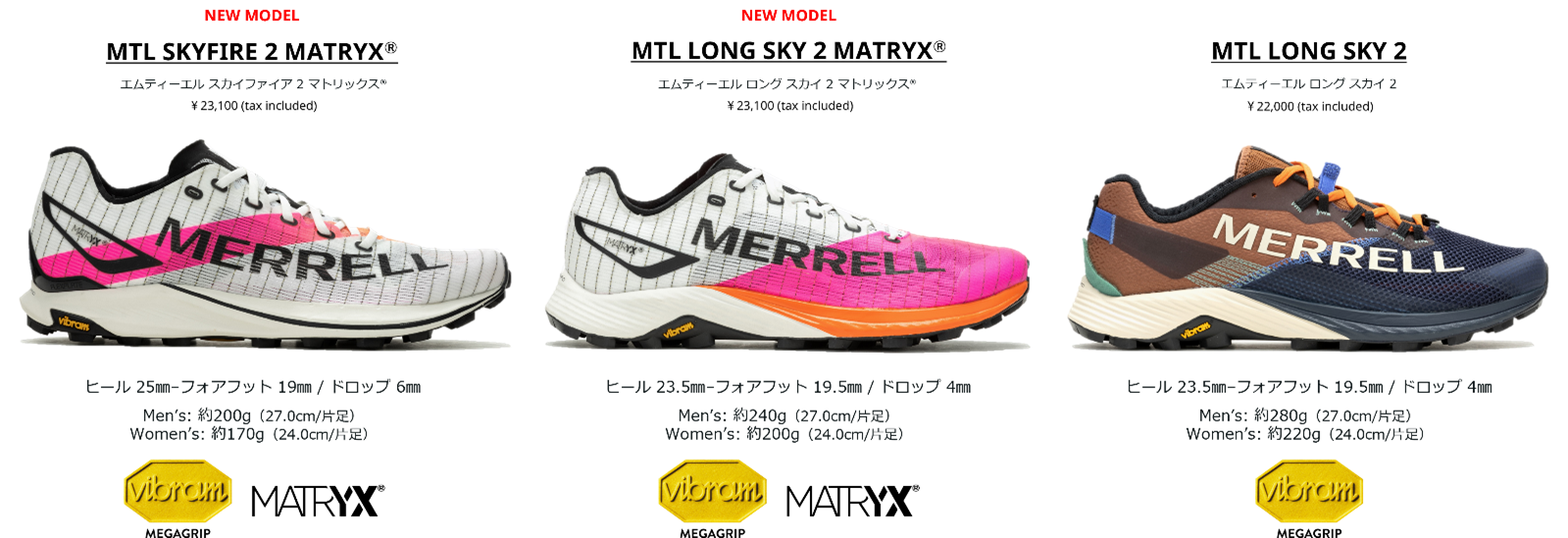 MERRELLは、あらゆるカテゴライズのトレイルランニングレースに対応する高機能モデルを段階的に拡大しており、短中距離のスピードレースやアップヒルで圧倒的な力を発揮する”MTL [Merrell Test Lab.]”フラッグシップラインを始め、長距離・長時間の厳しい環境下を想定した厚底の高機能ソールユニットを搭載する”AGILITY PEAK 5 (アジリティーピーク5)”を展開し、多くのユーザーから高い評価を獲得してきました。